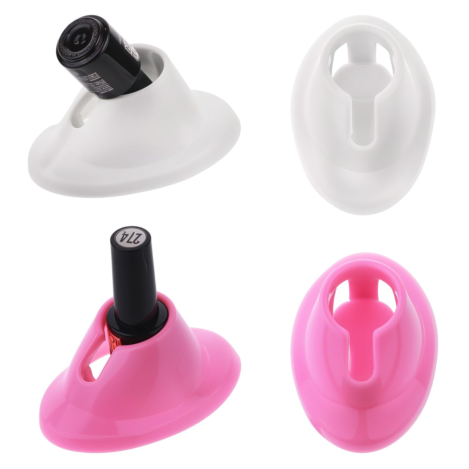 4 soportes para botellas de esmalte de uñas de goma suave rosa y blanco, 2 estilos antiderrames, soporte de botella para arte de u