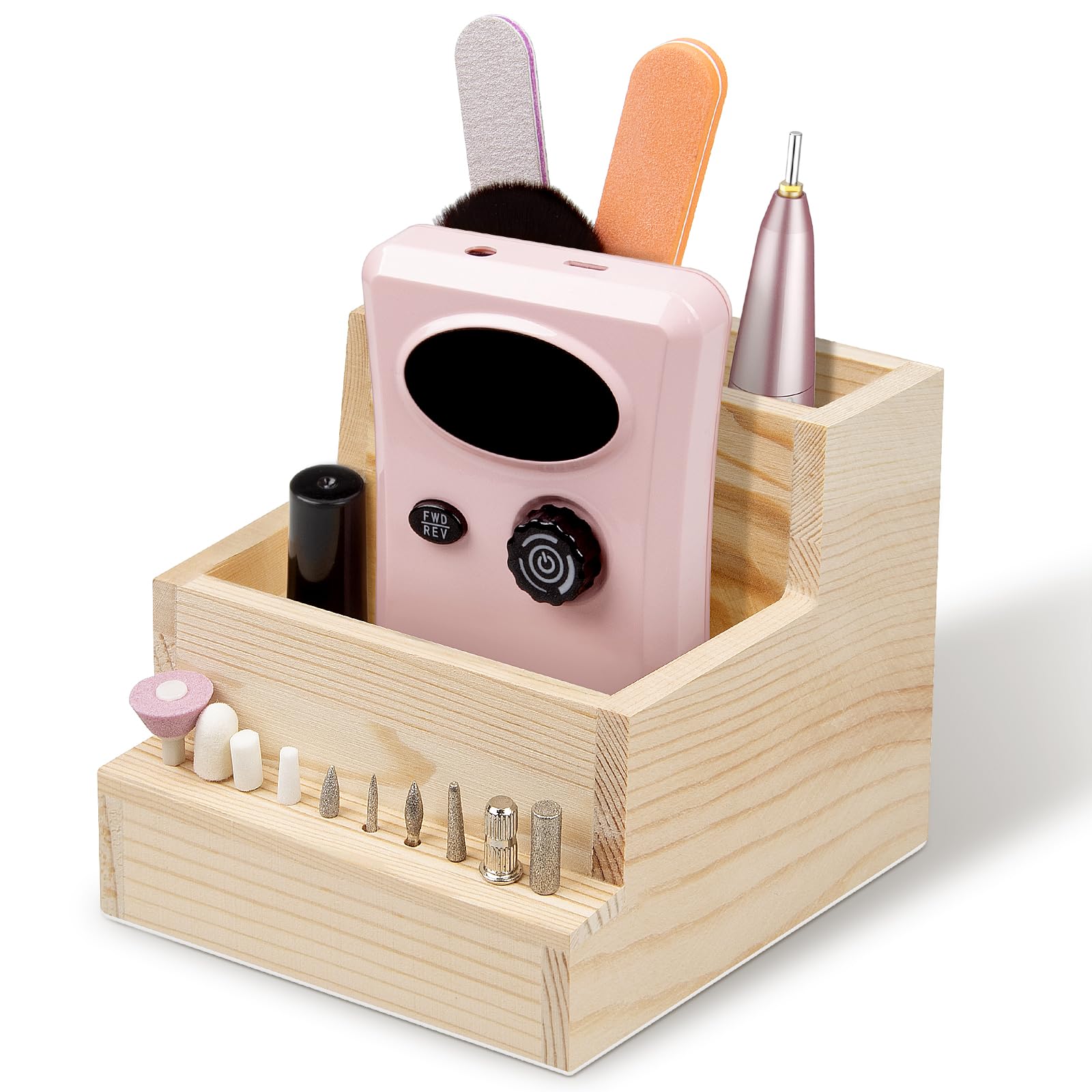 Soporte para brocas de uñas, 10 agujeros de madera, caja de almacenamiento de exhibición, organizador de brocas para uso doméstico