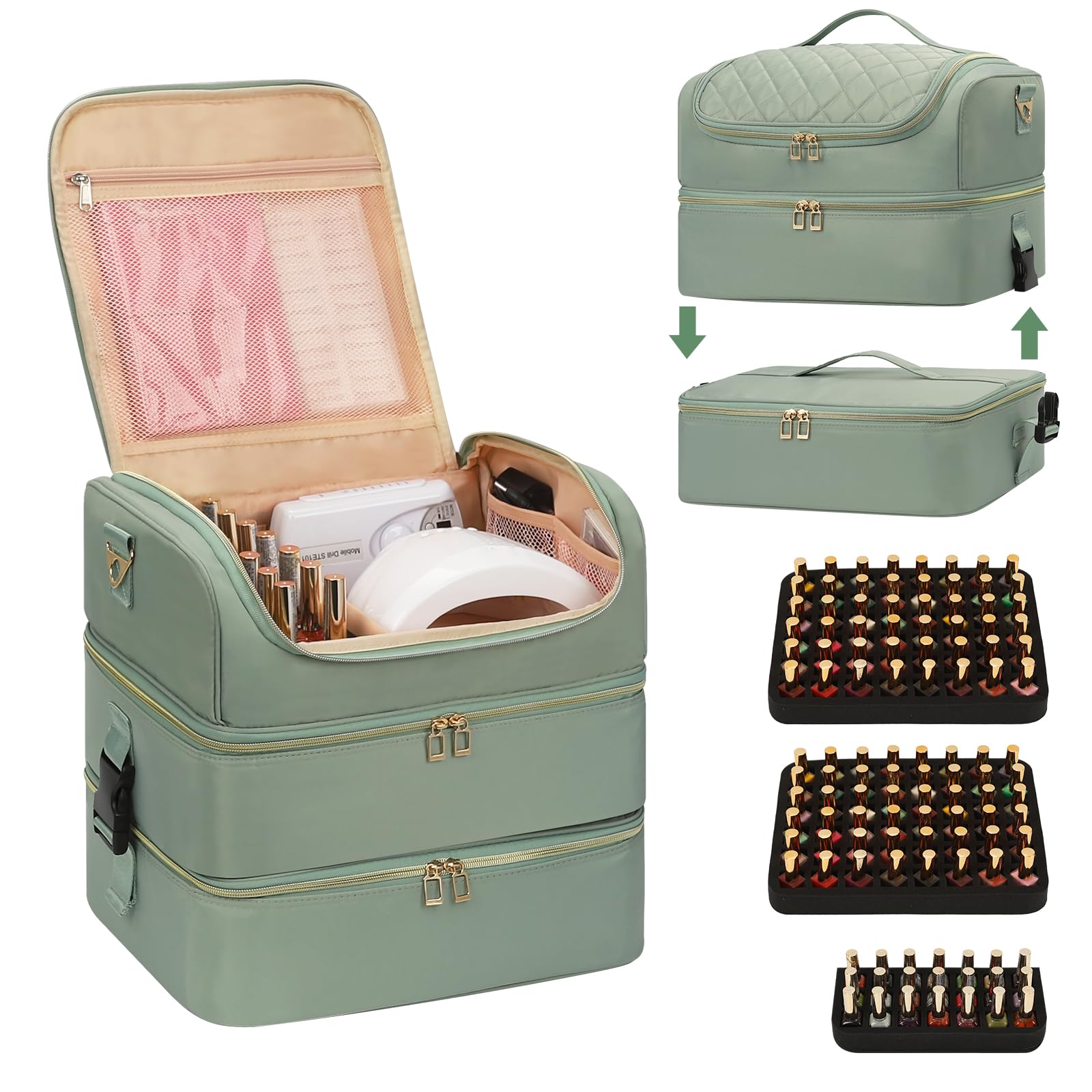 Extra Large Nail Polish Organizer Holds 117 Bottles – Three Layer Nail Organizers And Storage Bag, Portable Nail Supplies Organize