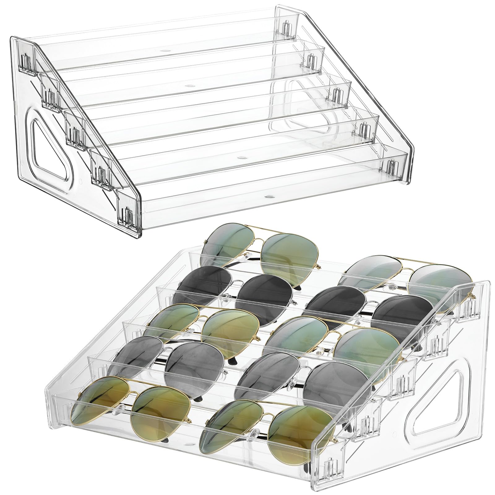 Paquete de 2 soportes organizadores de lentes de sol de 5 niveles, soporte versátil de acrílico transparente para lentes de sol, b