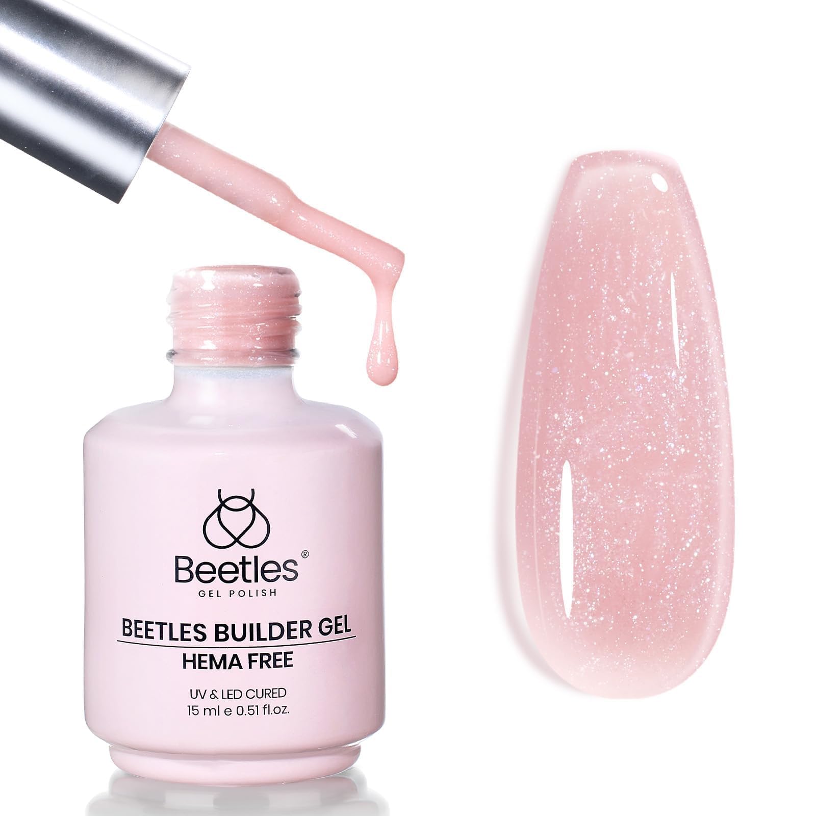 Beetles Builder Gel sin hema, 0.51 onzas, purpurina nude 7 en 1, sin hema, gel de mejora para construir ápice y extensión de uñas,