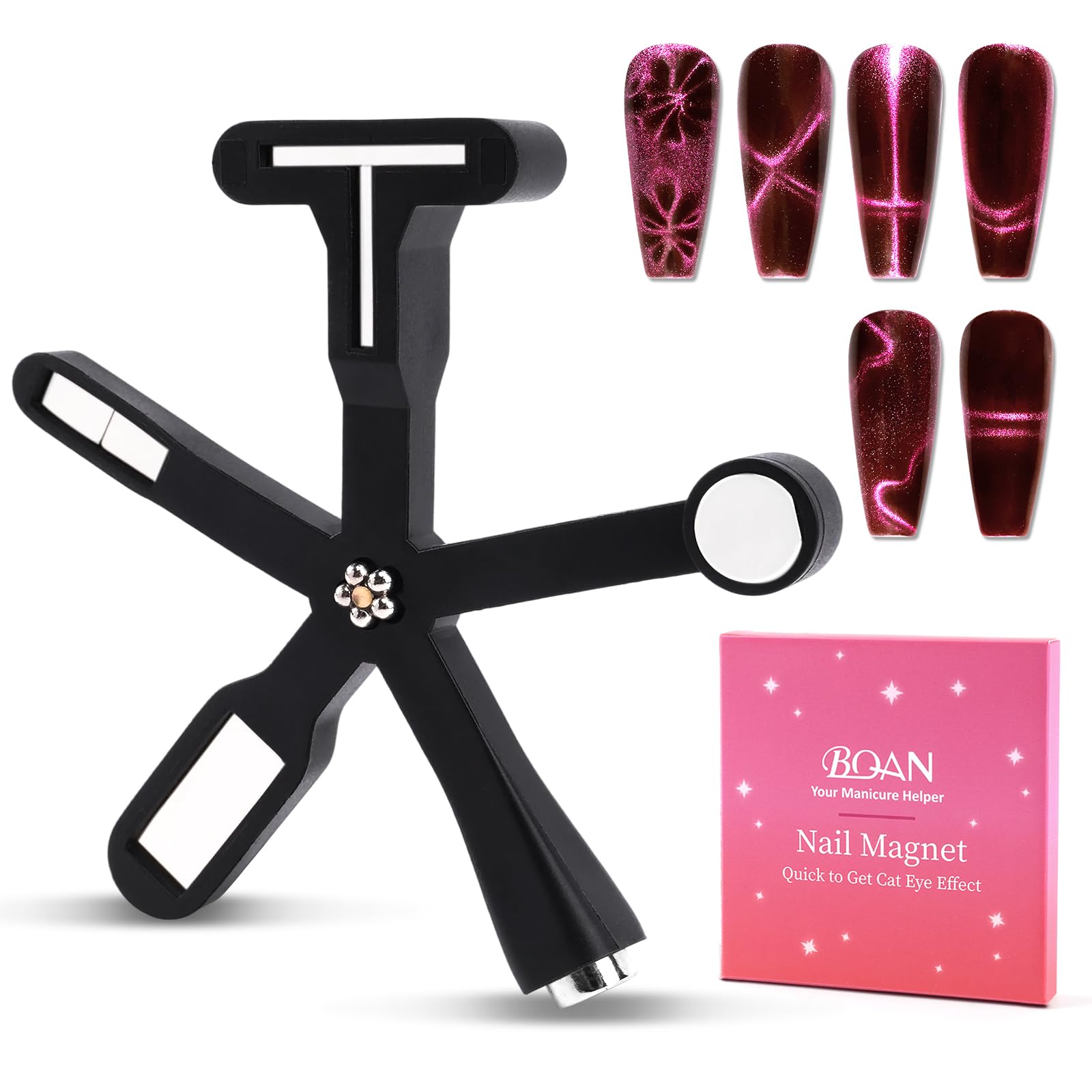 BQAN Imán de uñas de ojo de gato, mejorado 6 en 1 multifunción, fuerte magnético para esmalte de gel CatEye, crea impresionantes d