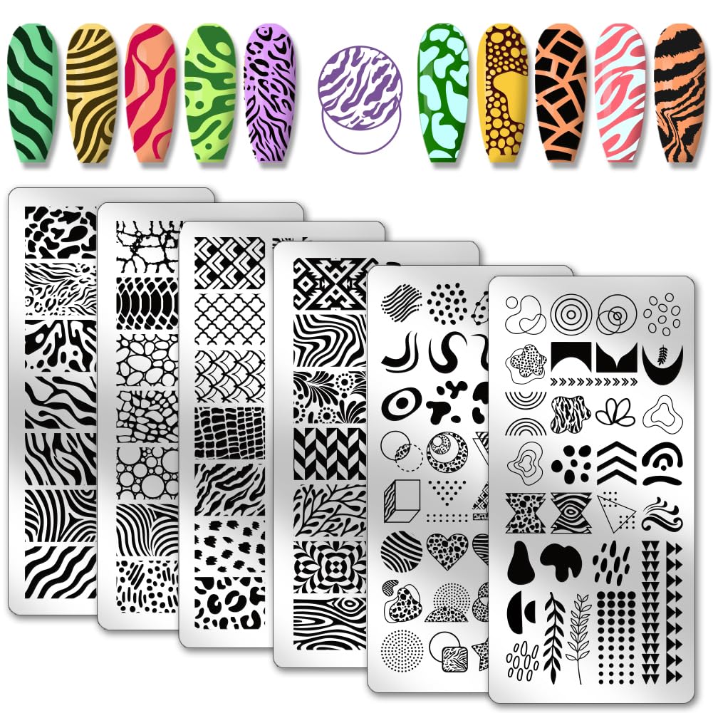 PH PandaHall Juego de 6 placas de sello de uñas, estampado de leopardo, placa de estampado de arte de uñas, textura de árbol, plan