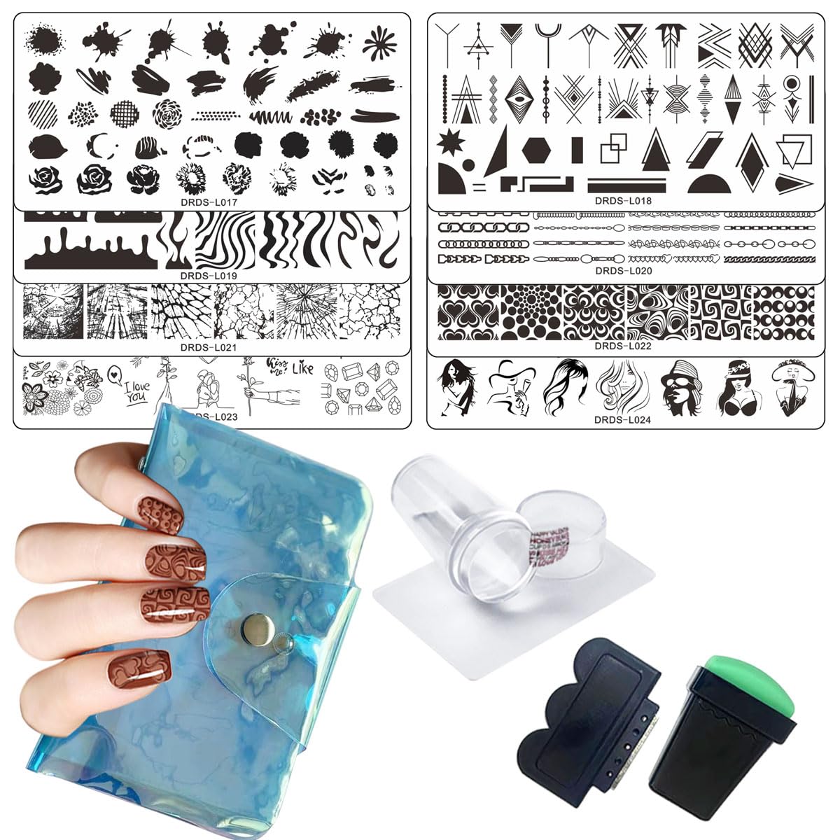 VNC Juego de placas para sellos de uñas, 13 piezas, diseño mixto, estampador, raspador y estuche