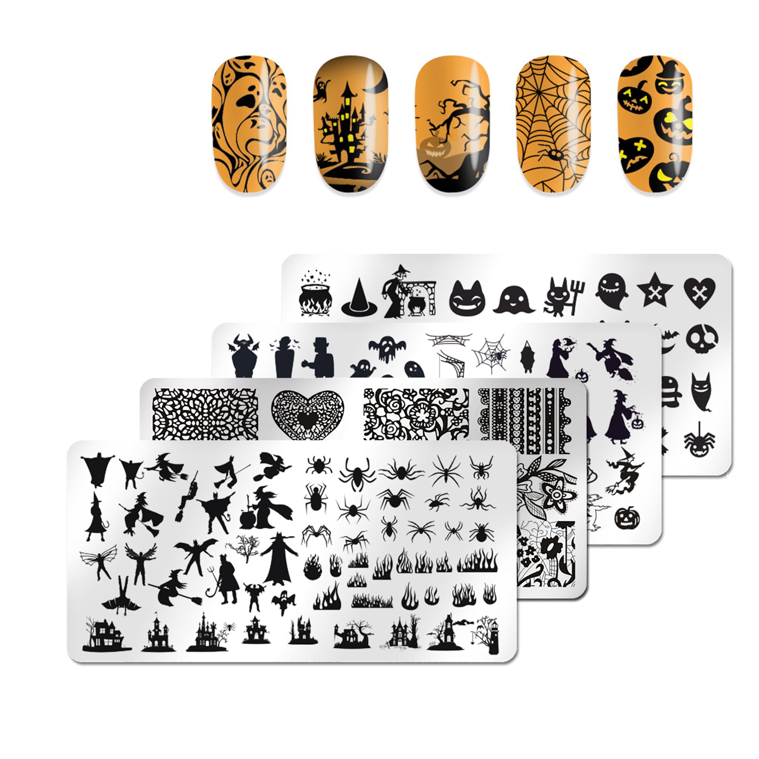 JERCLITY Juego de 6 placas de estampado de uñas de Halloween para uñas, bruja, cráneo, araña, Jack-o’-Lantern, placa de imagen de