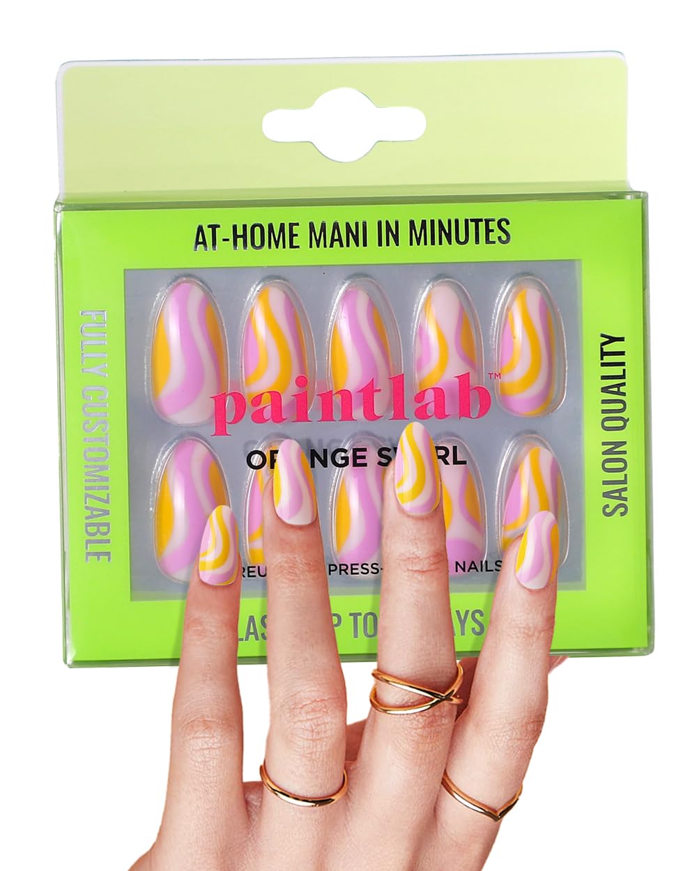 PaintLab Kit de manicura a presión de uñas a presión, naranja y almendra, juego de 24 piezas, uñas postizas de larga duración con
