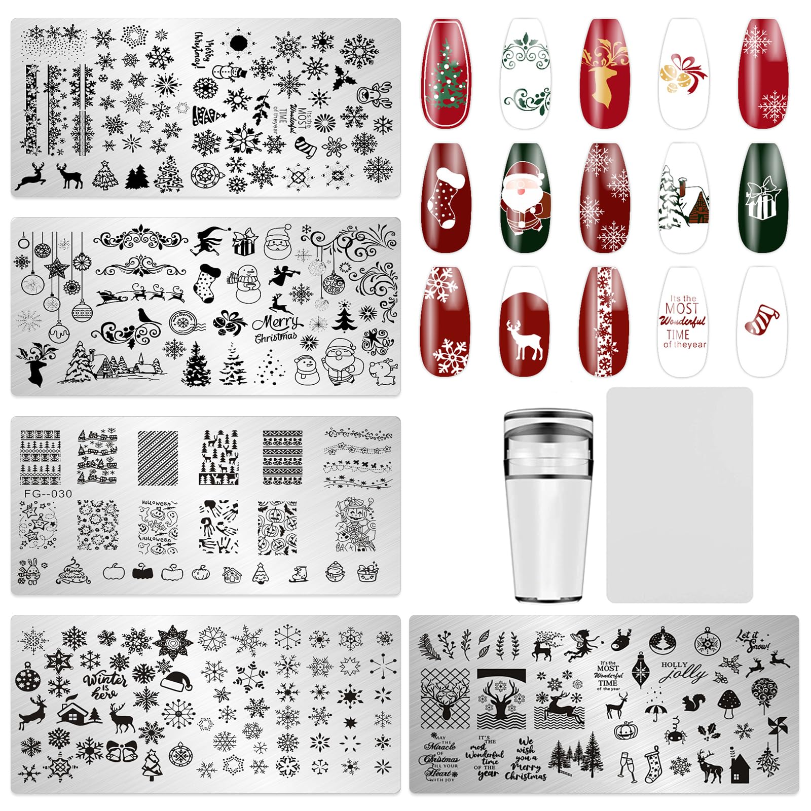 JCAKES – Juego de 5 sellos de uñas de Navidad, placas de estampado de uñas, sello y raspador