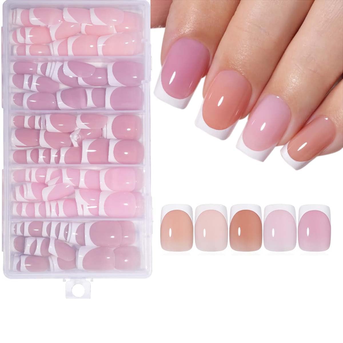 160 uñas postizas a presión con punta francesa, uñas postizas cortas cuadradas, uñas postizas francesas de cobertura completa, col