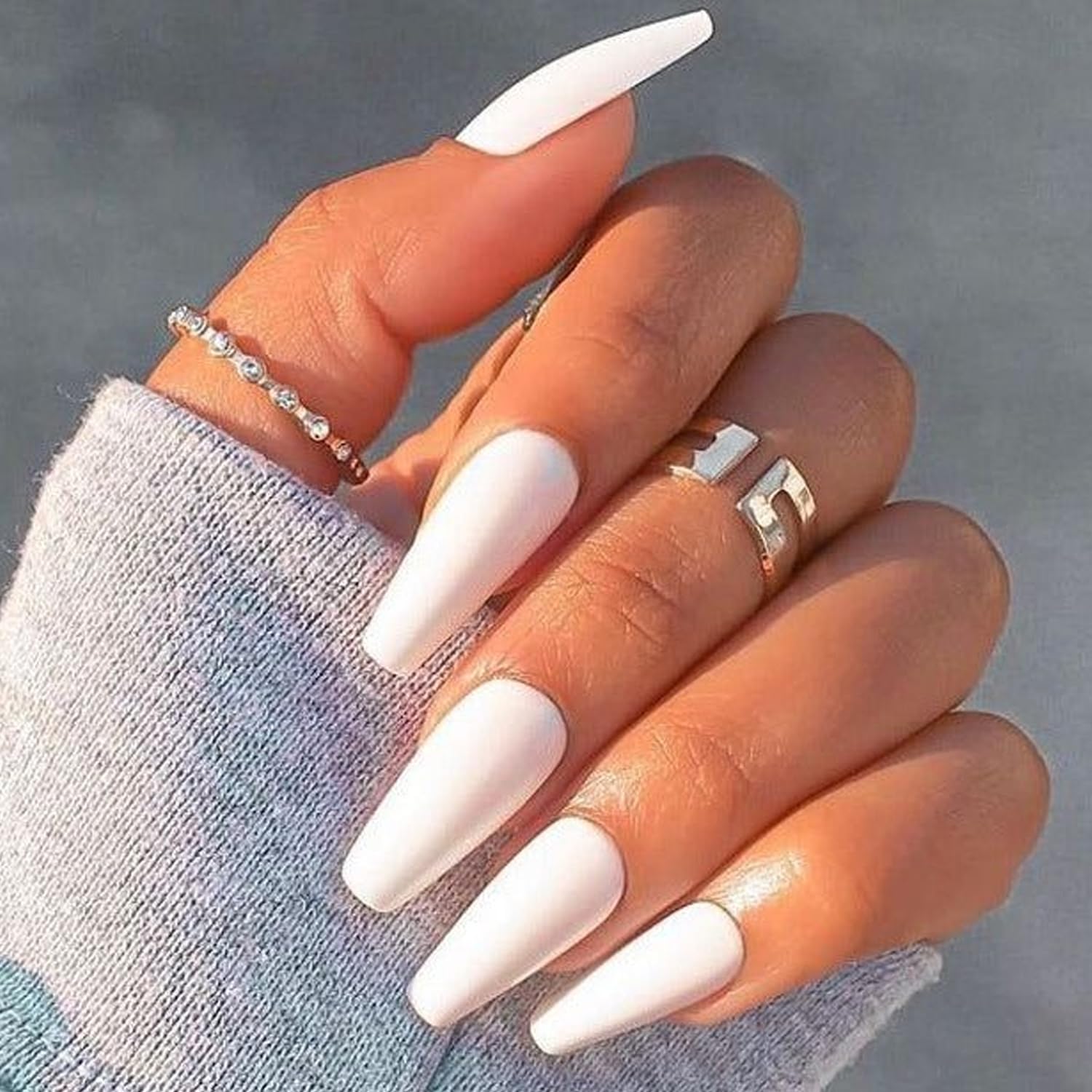 GLAMERMAID Uñas largas a presión, ataúd, uñas postizas de ataúd blanco con pestañas adhesivas, 24 piezas de uñas adhesivas de uñas