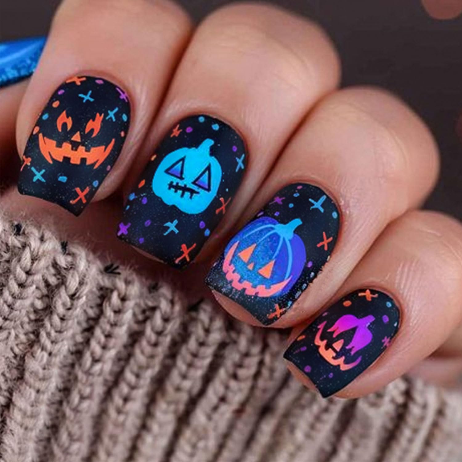 24 Pcs Halloween Press on Nails Short Square Matte Fake Nails with Pumpkin Designs Black Nail Press ons Full Cover Halloween False