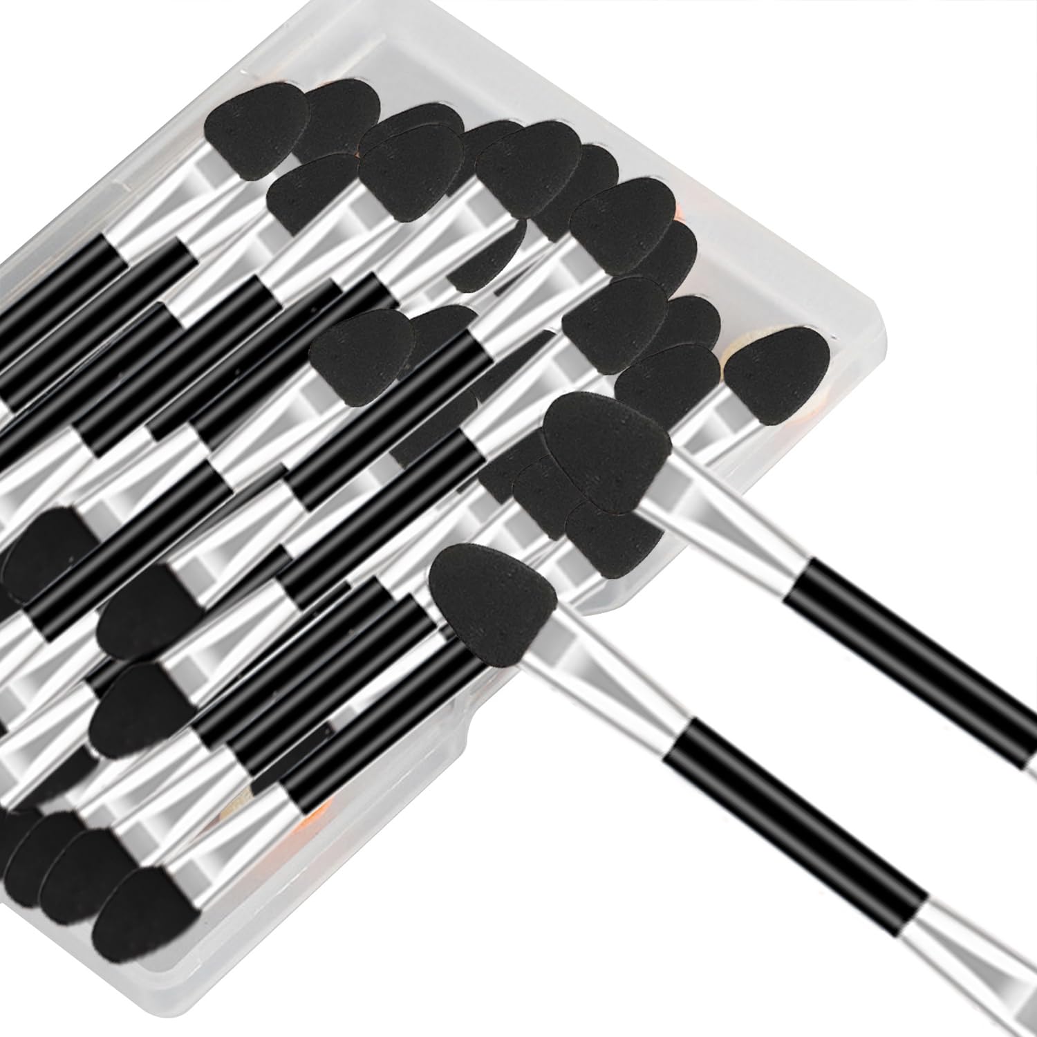 150 aplicadores de sombra de ojos con recipiente. Brochas de maquillaje desechables profesionales de 2.45 pies para sombra de ojos
