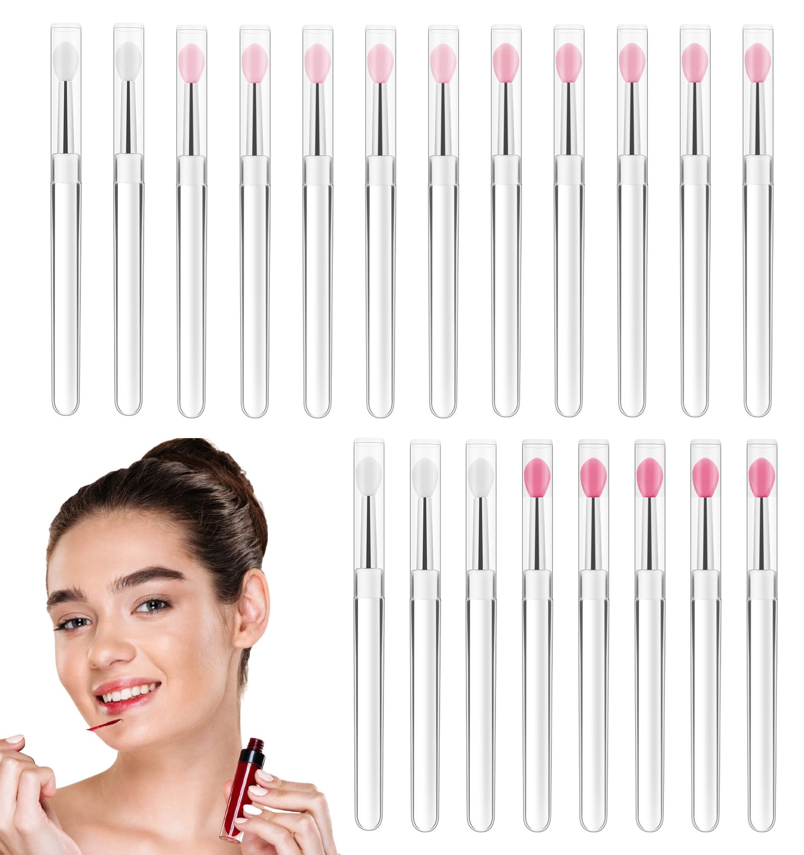 Cepillo de labios de silicona, juego de 20 aplicadores de pinceles de labios con tapas, herramientas de maquillaje reutilizables p