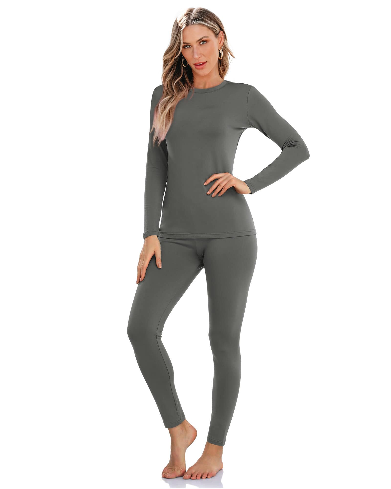 SAMPEEL Ropa interior térmica para mujer, pantalones largos con forro polar de manga larga, leggings, conjunto de descanso para cl