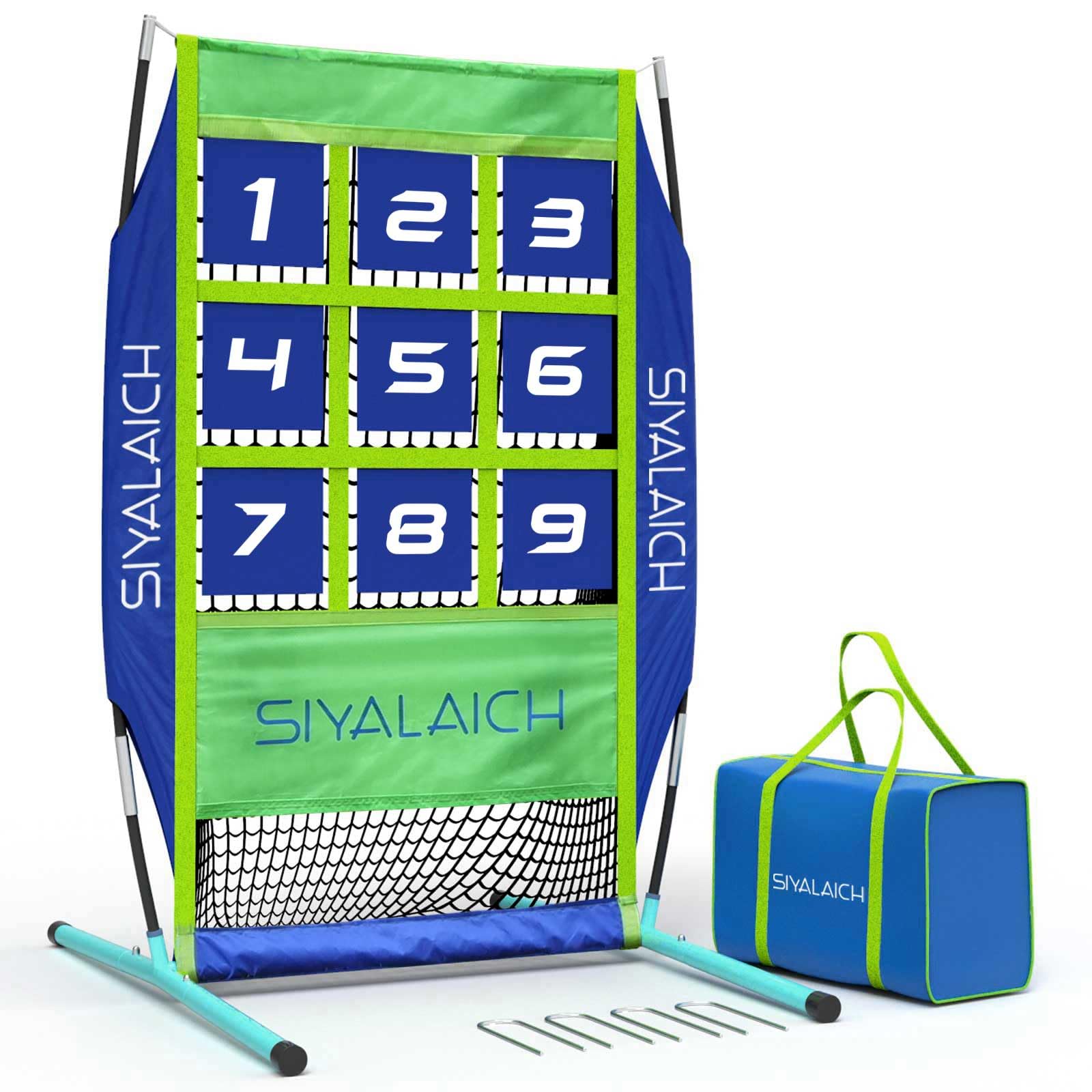 Pitching & Hitting Net, Portable Baseball & Softball 9 Hole Target Net with Strike Zone,Easy and Quick Assembly and Disassembl,Mos
