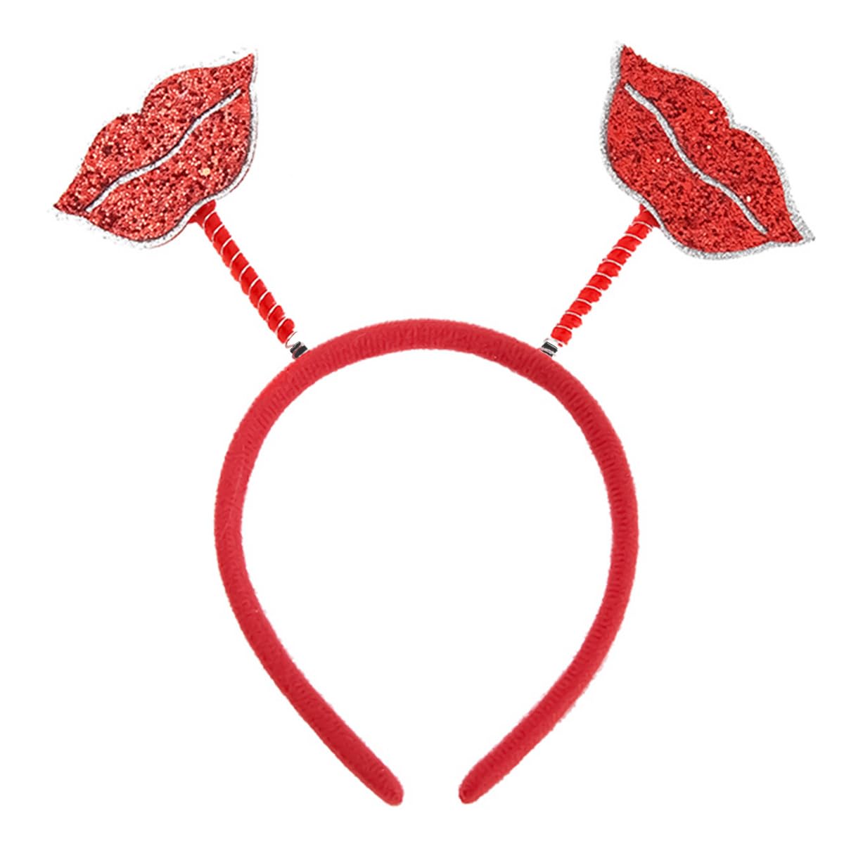 Diademas para el día de San Valentín con purpurina roja para el cabello, banda para el cabello con labios besos, bopper, accesorio