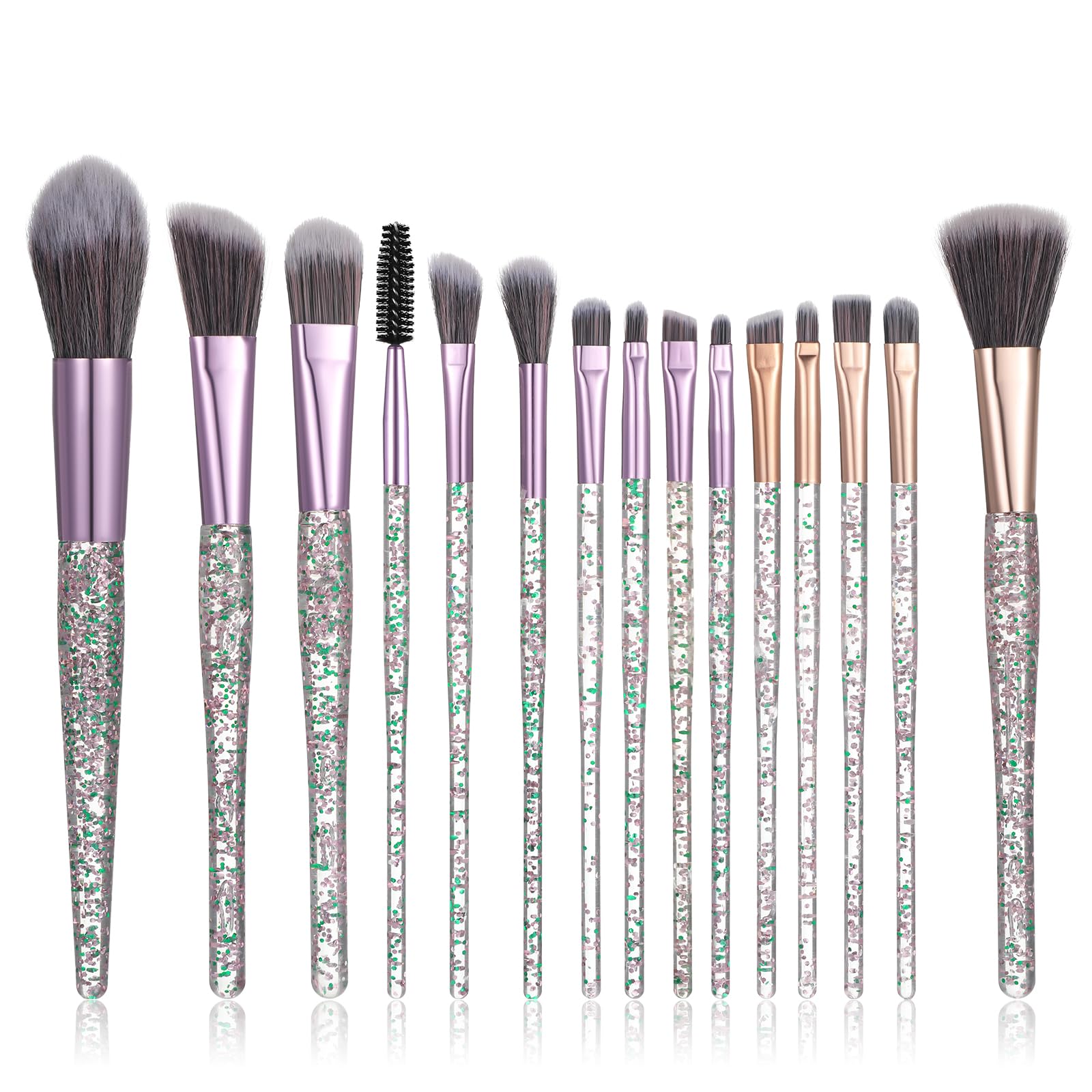 Juego de 15 brochas de maquillaje grises, con purpurina de cristal, lindo cepillo de maquillaje para sombra de ojos, kit profesion