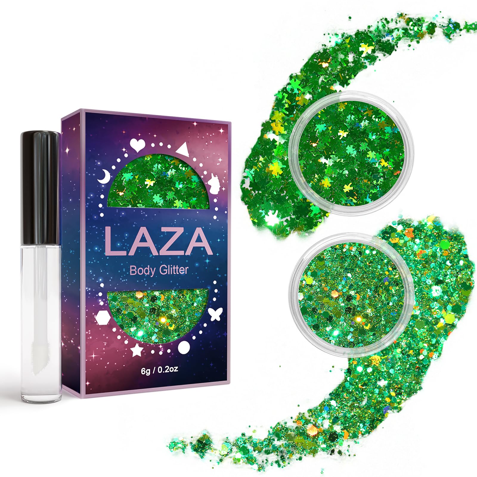 Laza 2 tarros con purpurina para el día de San Patricio, lentejuelas gruesas iridiscentes con pegamento de purpurina, sombra de oj
