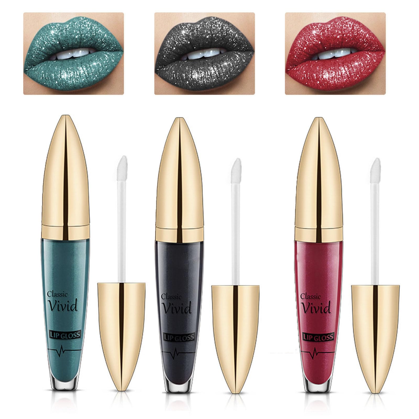 Classic Vivid Glitter – Juego de 3 lápices labiales metálicos brillantes e impermeables
