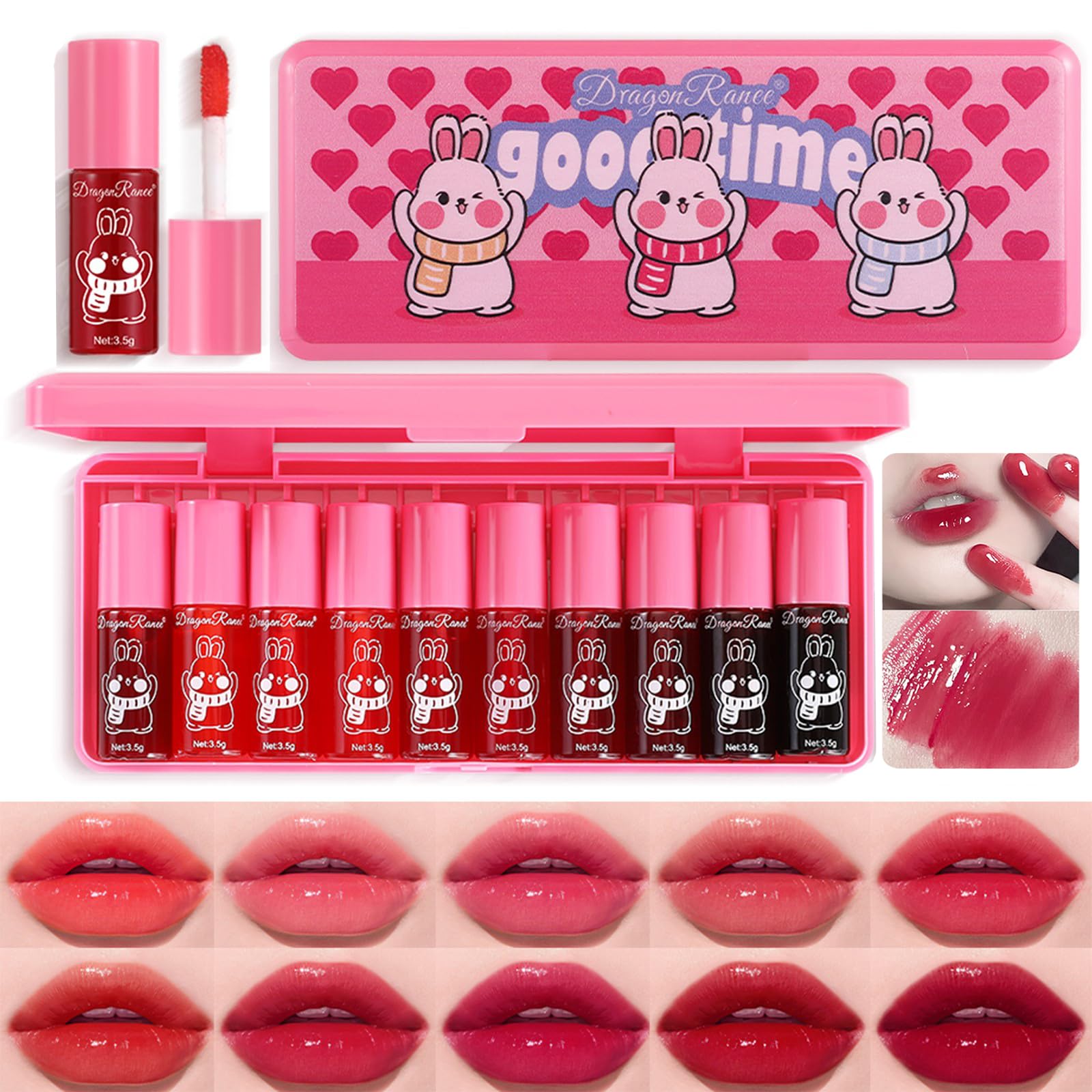 Juego de 10 tintes de labios bonitos y brillantes y pintalabios mate con mini lápiz labial de larga duración y secado rápido para