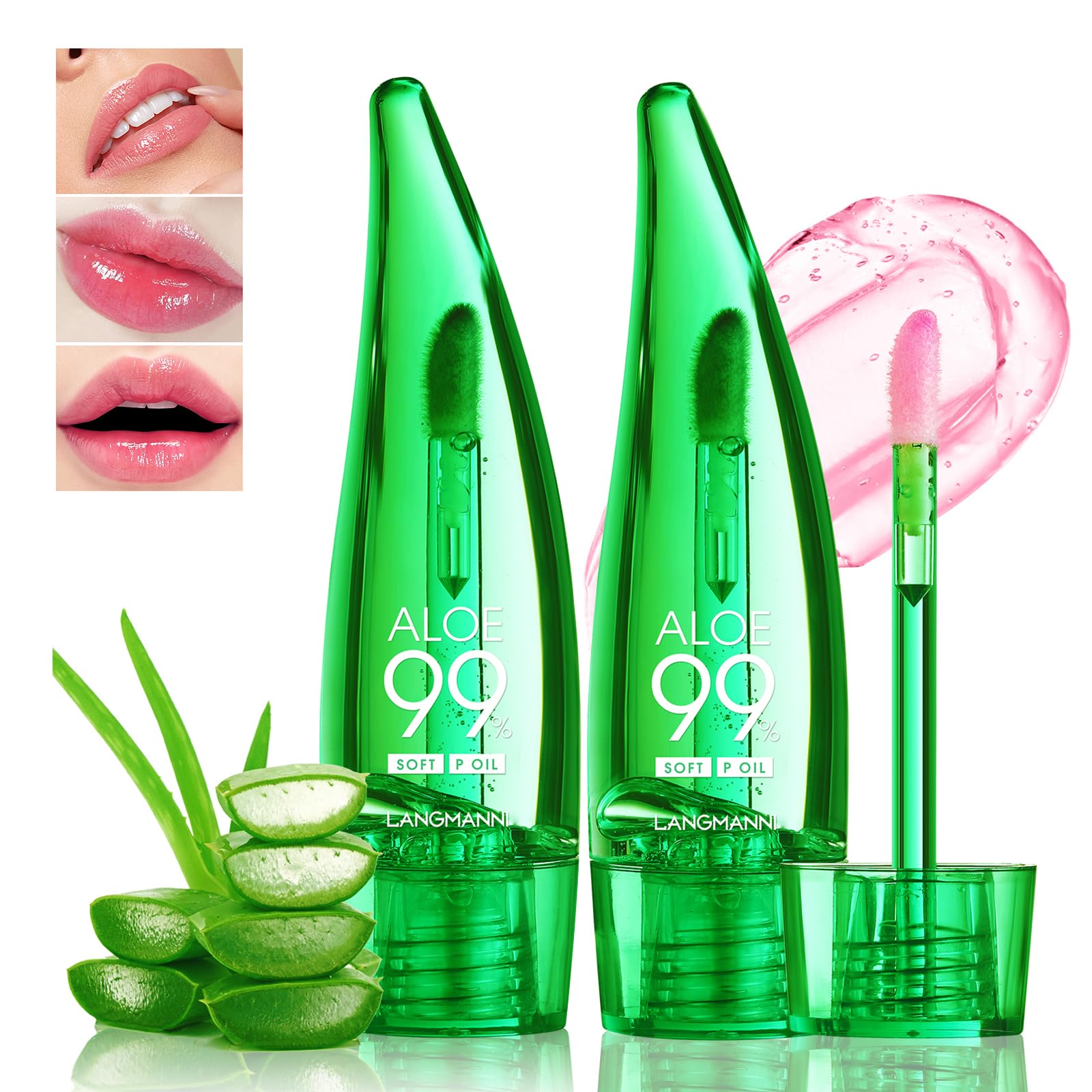 2 unidades de aloe vera que cambia de color lápiz labial con aceite de labios, color rosa mágico que cambia de color, brillo labia