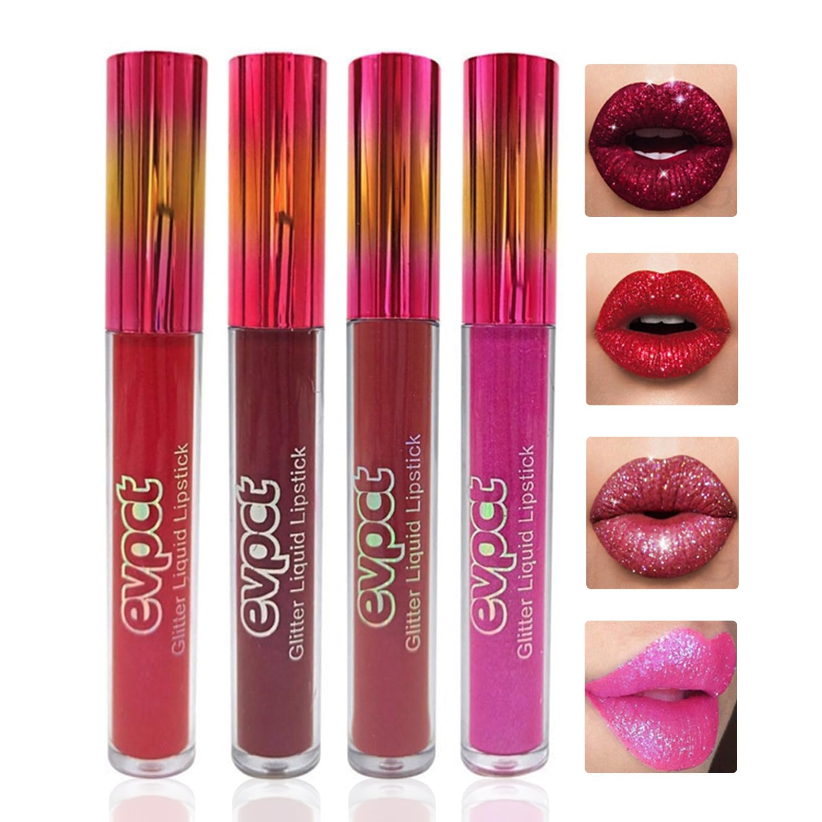 Juego de 4 lápices labiales líquidos mate a brillantina, kit de brillo de labios impermeable con brillo de diamante de larga durac