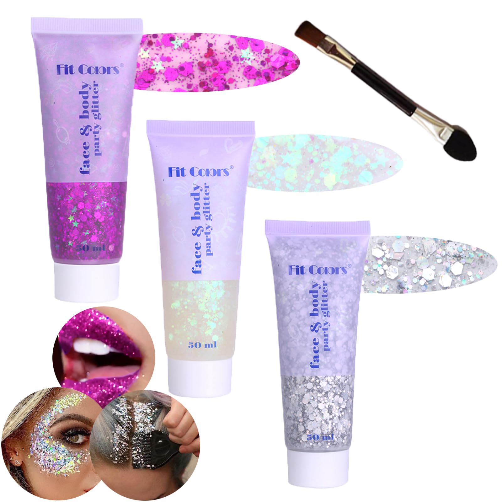 Purpurina facial y corporal, brillo para el cabello, gel grueso para niñas, maquillaje, cantantes, conciertos, festival de sirena,