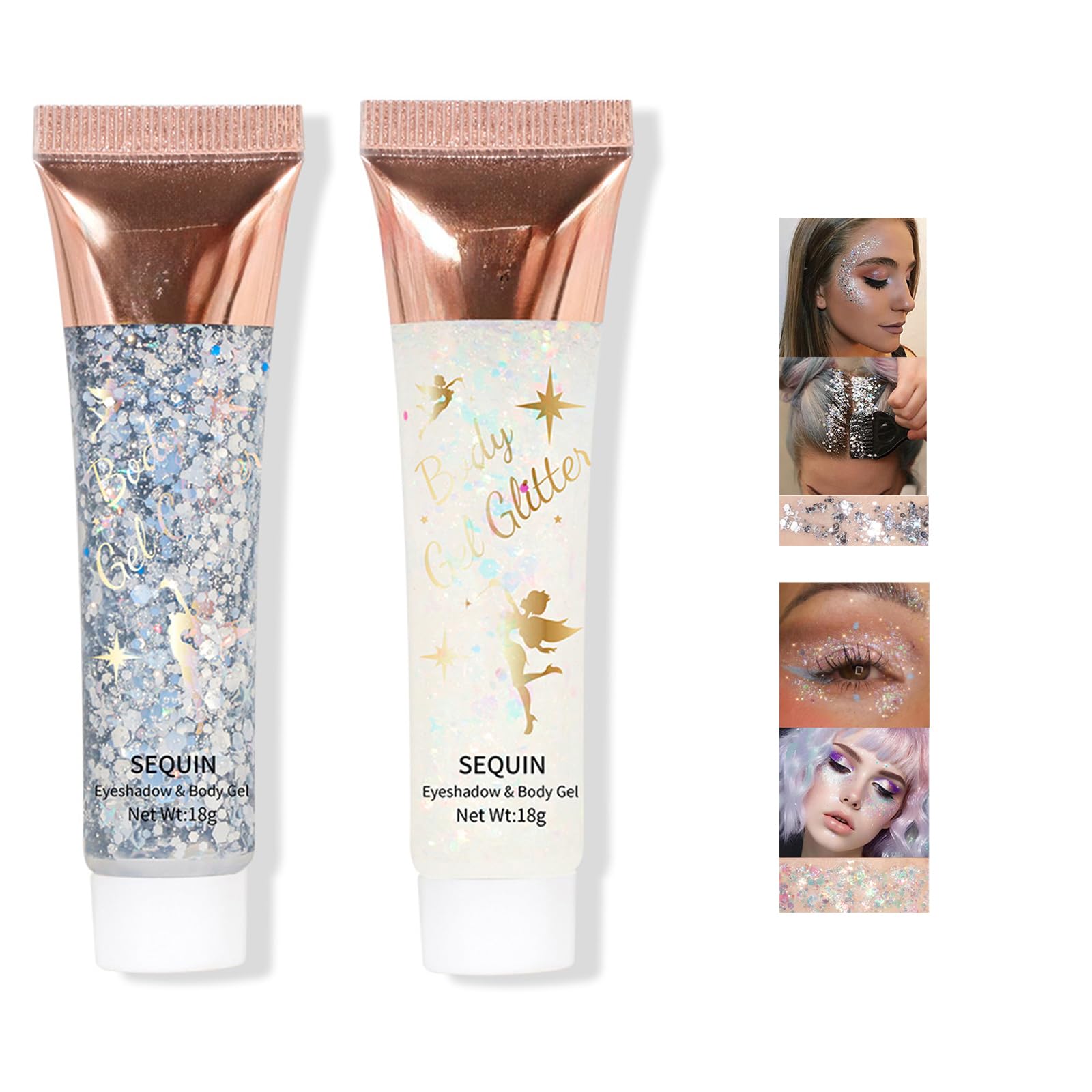 Brillantina corporal de 8 colores plateado y blanco juntos para el cabello, accesorios de gel autoadhesivos, purpurina cosmética d