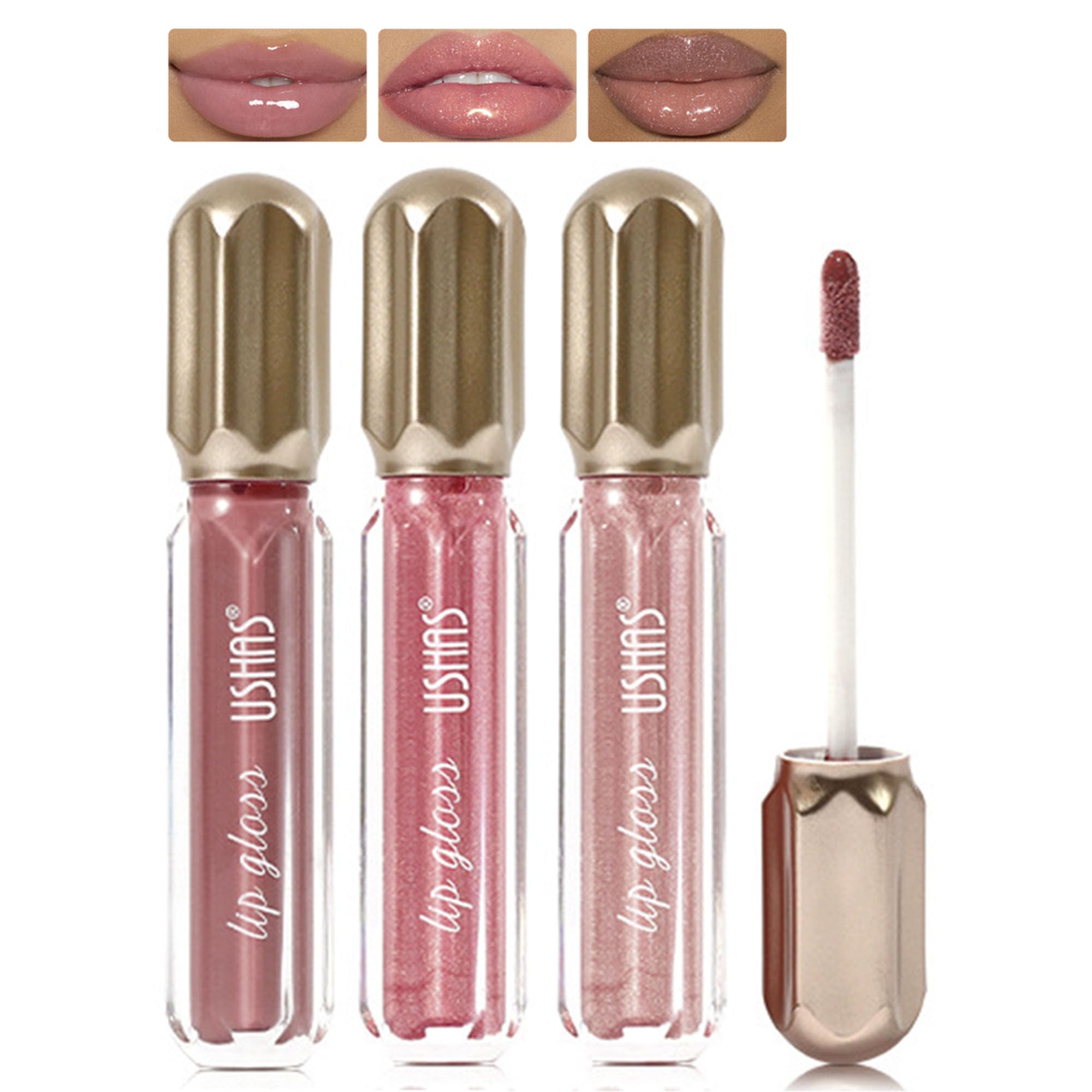 Juego de 3 brillos de labios con perlas de espejo, brillo de labios hidratante con purpurina brillante para mujeres, kit de maquil