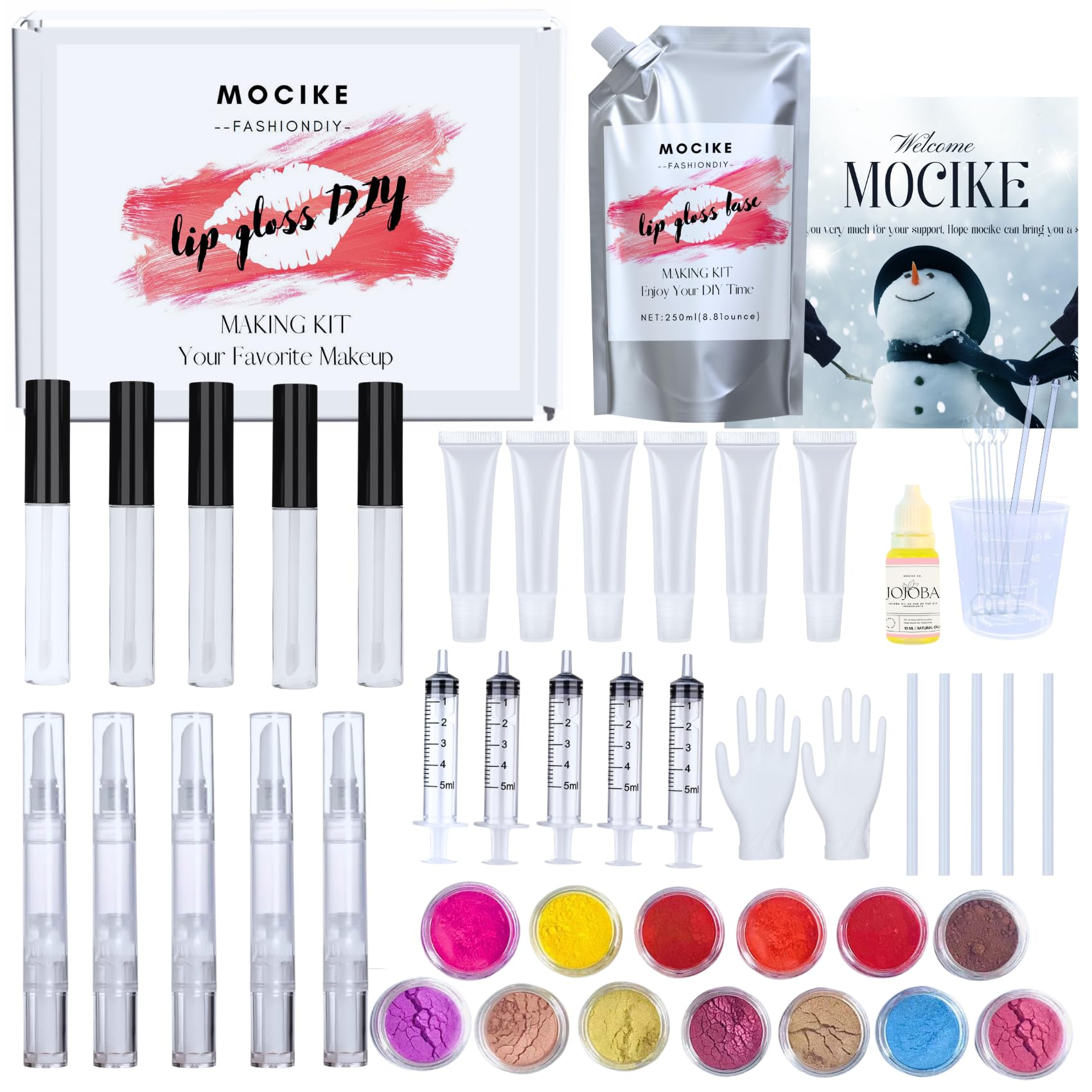 MOCIKE Kit de fabricación de brillo de labios DIY para regalos de niña, 74 piezas de kit de brillo de labios para hacer tu propio