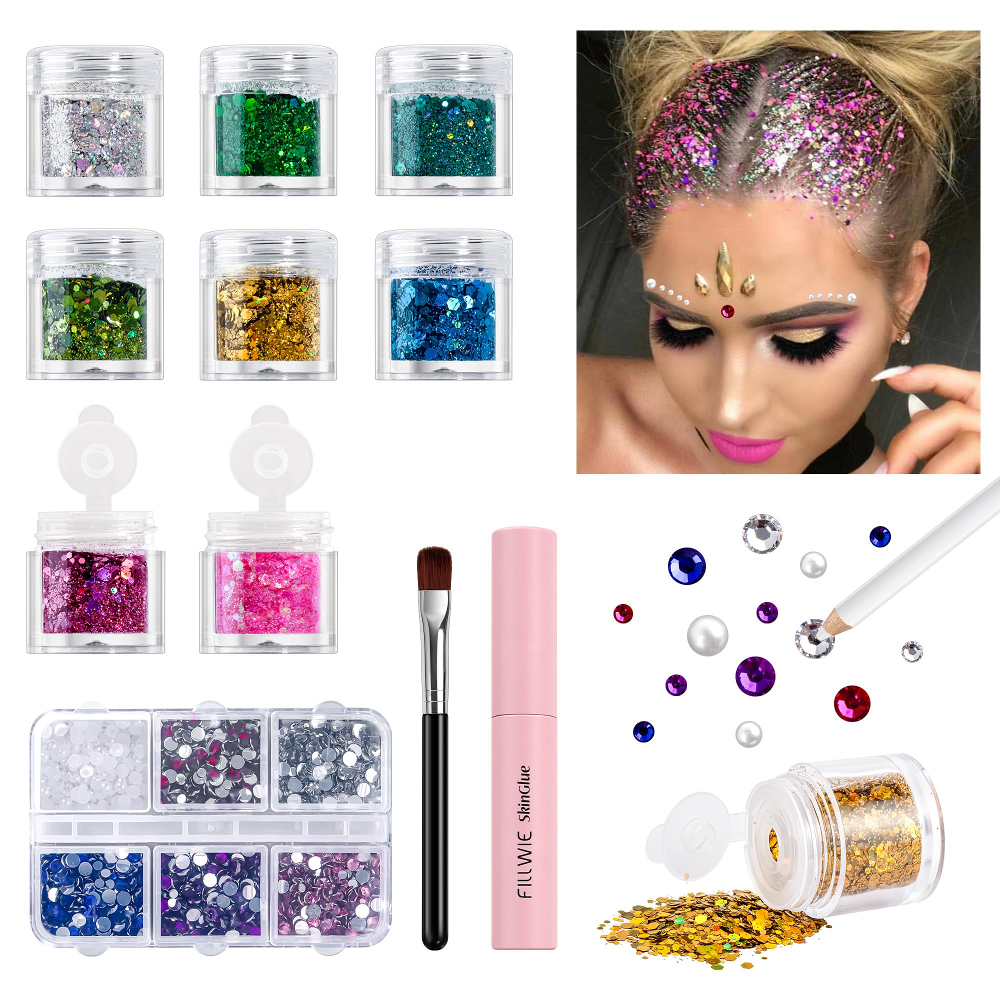 Maquillaje de purpurina para el cabello corporal rosa para mujeres, gel holográfico de sirena con purpurina de larga duración para