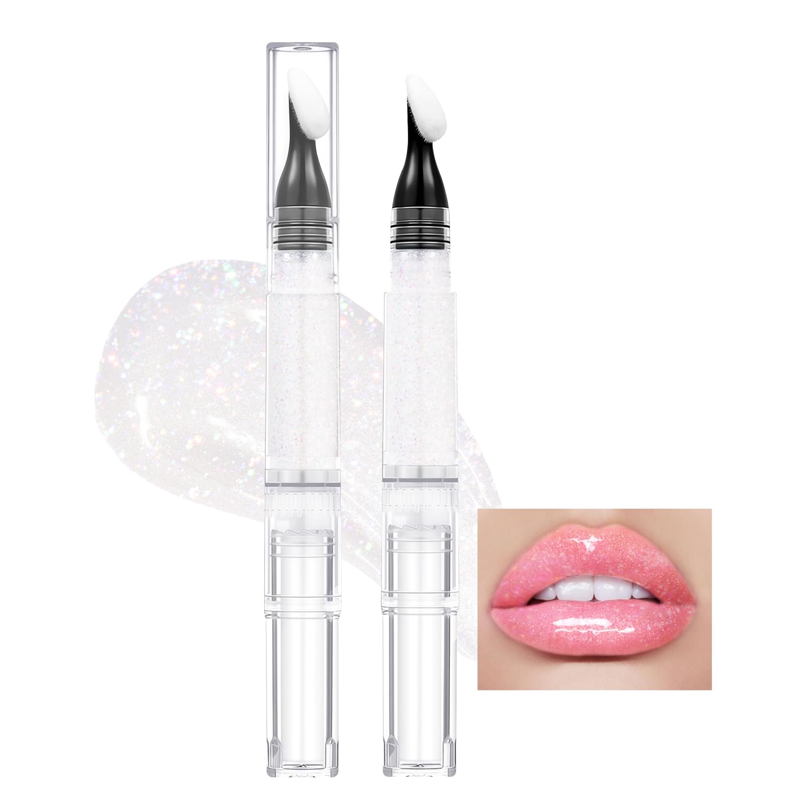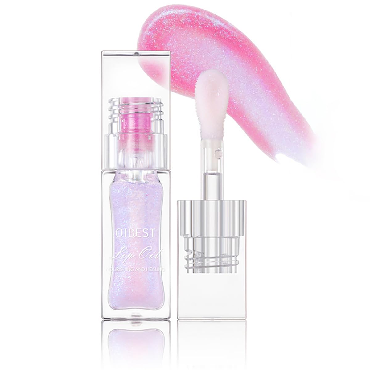 Aceite labial mágico que cambia de color, brillo labial con purpurina, aceite de labios hidratante para cabeza de cepillo grande m