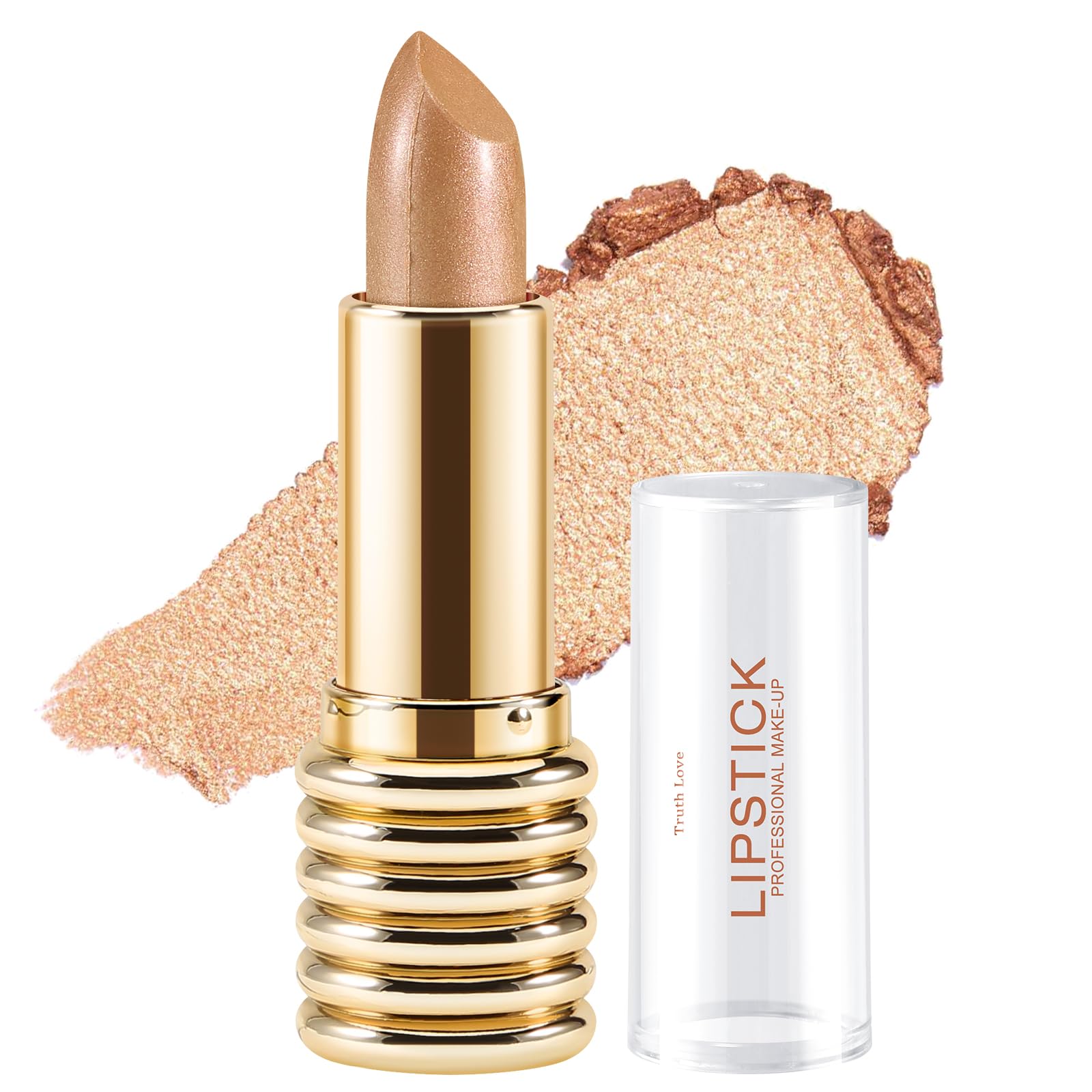 Lápiz labial metálico con purpurina rosa nude, de larga duración, brillo de labios con purpurina para mujeres, a prueba de transfe