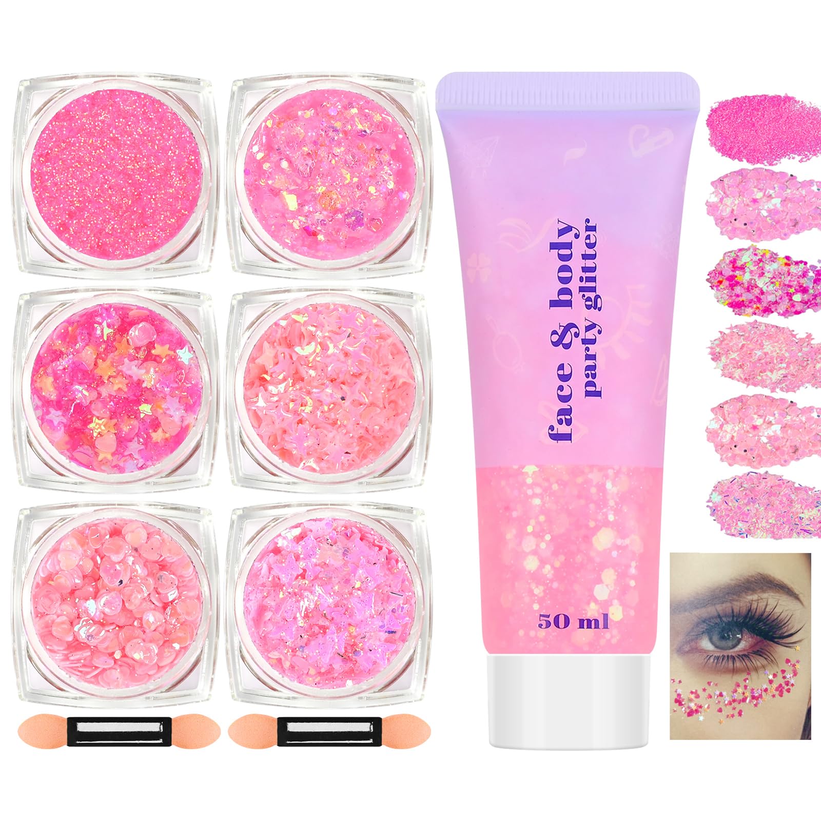 Gel de purpurina rosa para rostro y cuerpo, pintura holográfica para fiestas, conciertos, animadoras, accesorios gruesos para fest