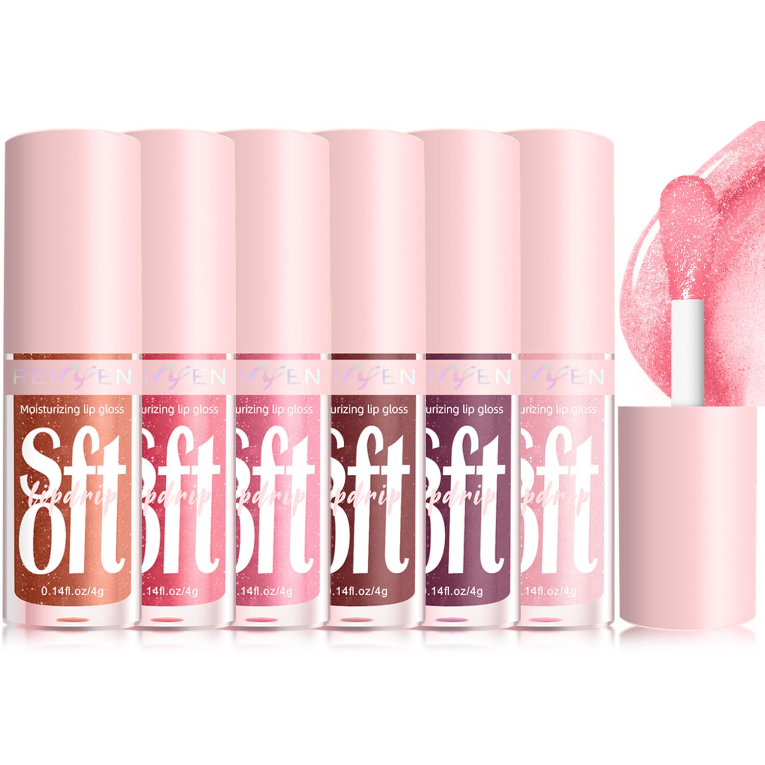 6 piezas de aceite hidratante para labios, cabeza de cepillo grande, esmalte de labios brillante transparente, aceite de brillo la