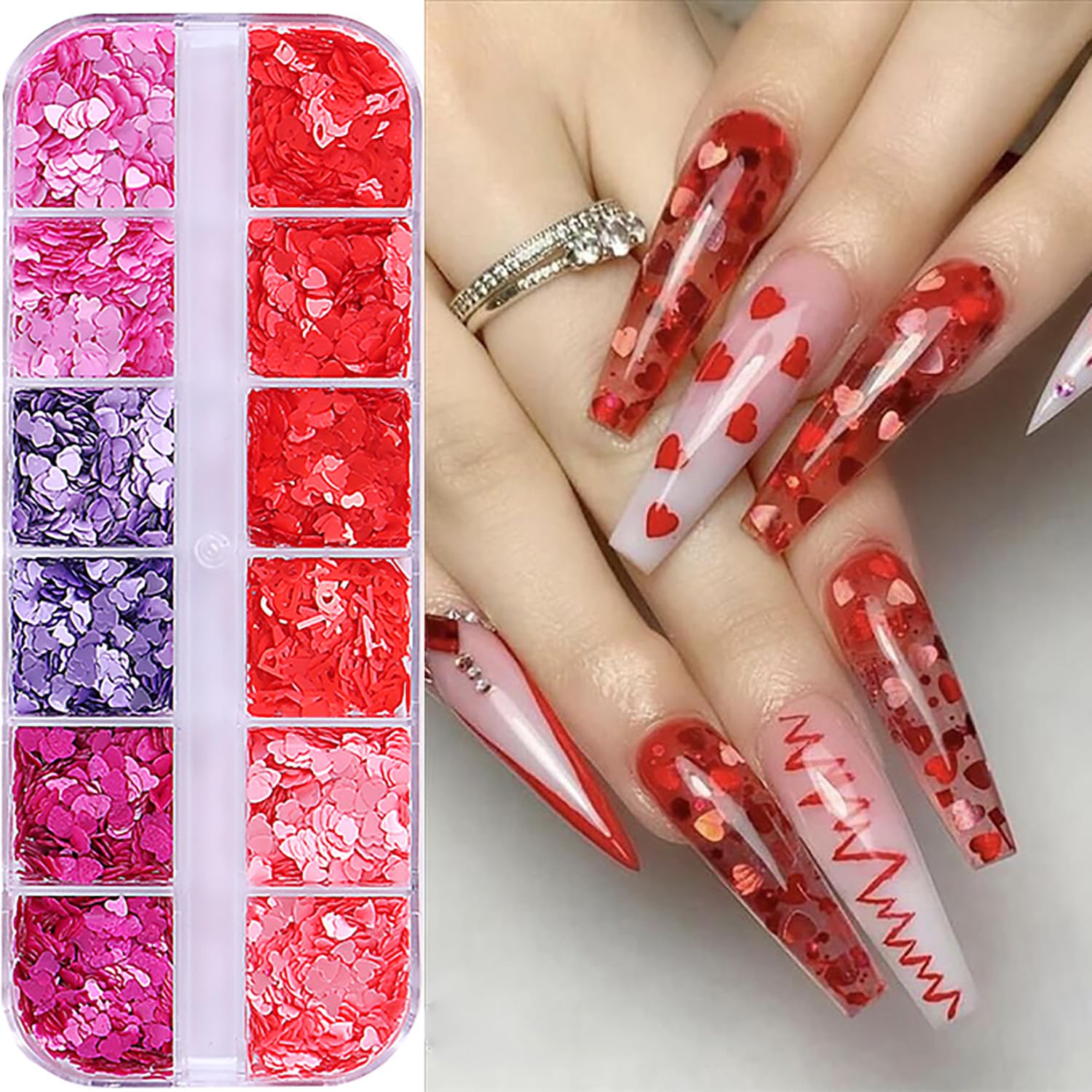 12 rejillas para arte de uñas de San Valentín, letras con purpurina, labios de corazón, lentejuelas, holográficos, copos de purpur