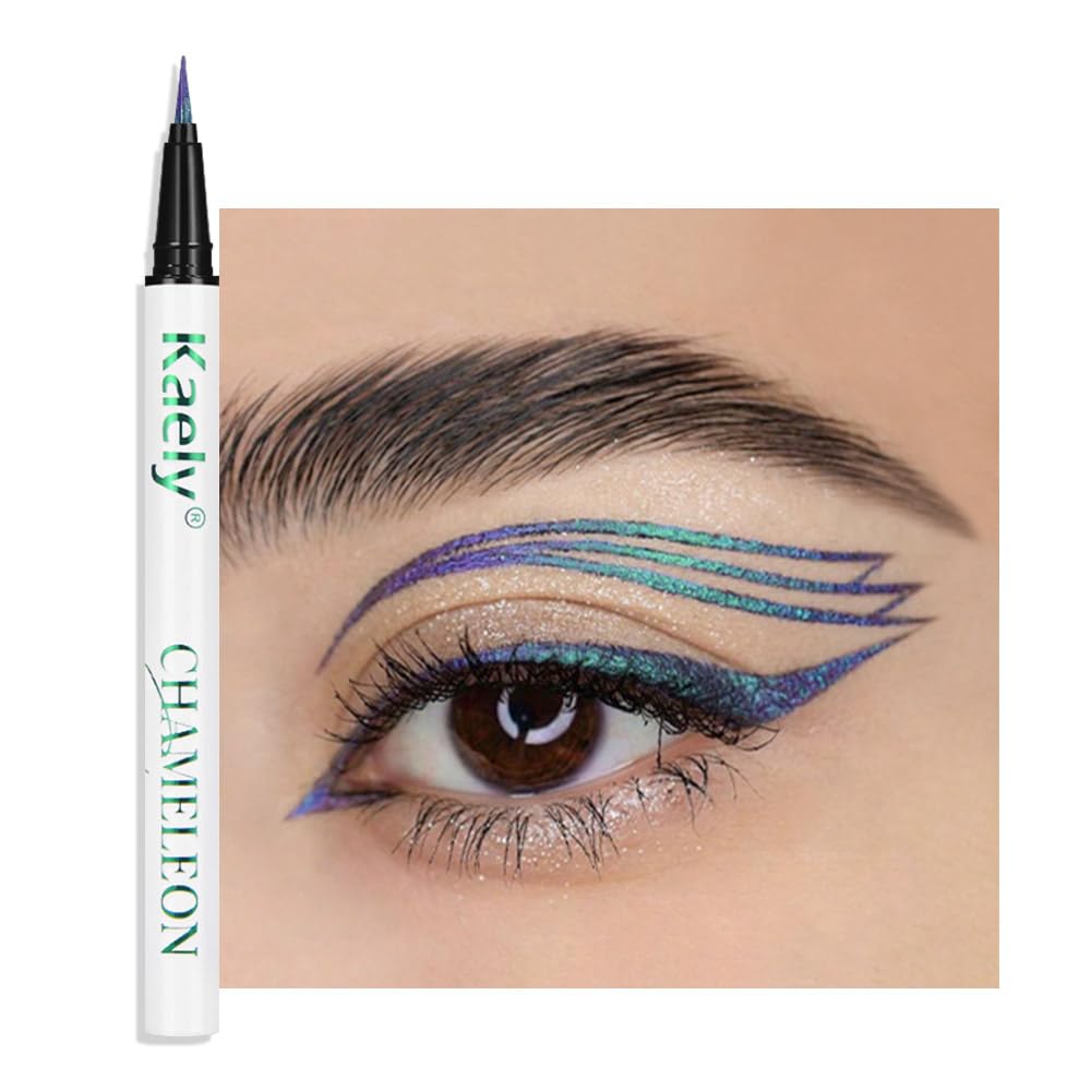 Kaely Delineador de ojos líquido Chameleon, líquido delineador de ojos cromado metálico con purpurina, delineador de ojos de color