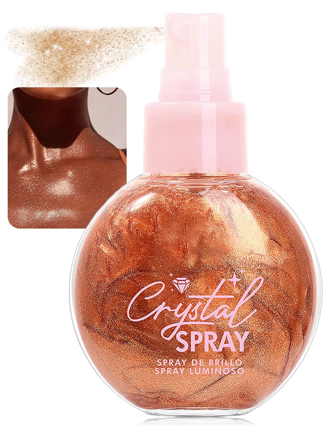 Spray de purpurina corporal, brillo corporal de bronce hidratante, iluminador de brillo de brillo de secado rápido y no pegajoso p