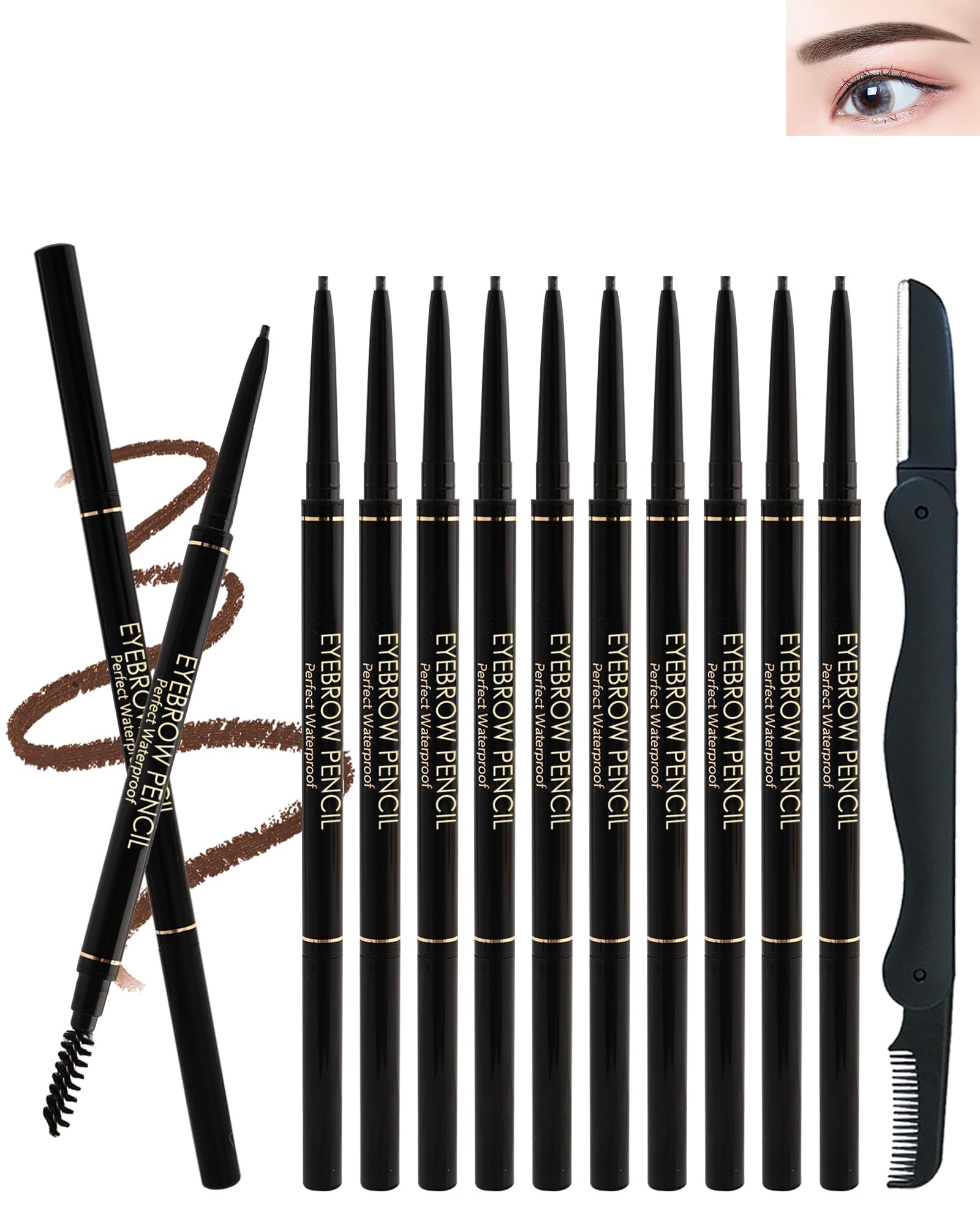 Juego de 12 lápices de cejas marrones impermeables, lápiz retráctil profesional para cejas, ultra fino de larga duración para deli