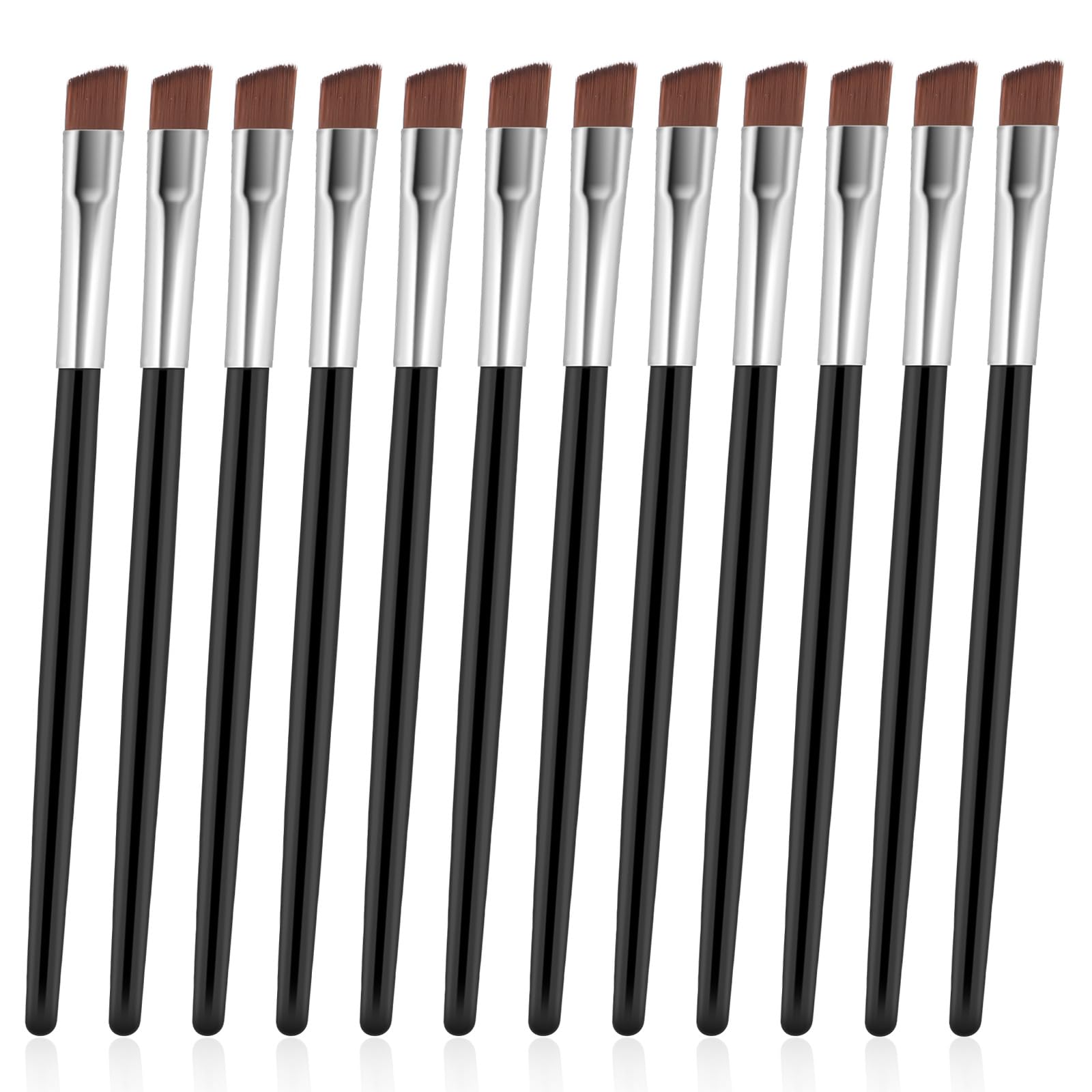12 pinceles inclinados para delineador de ojos en ángulo, cepillo en ángulo fino para cejas, cepillo de sombra de ojos inclinada d
