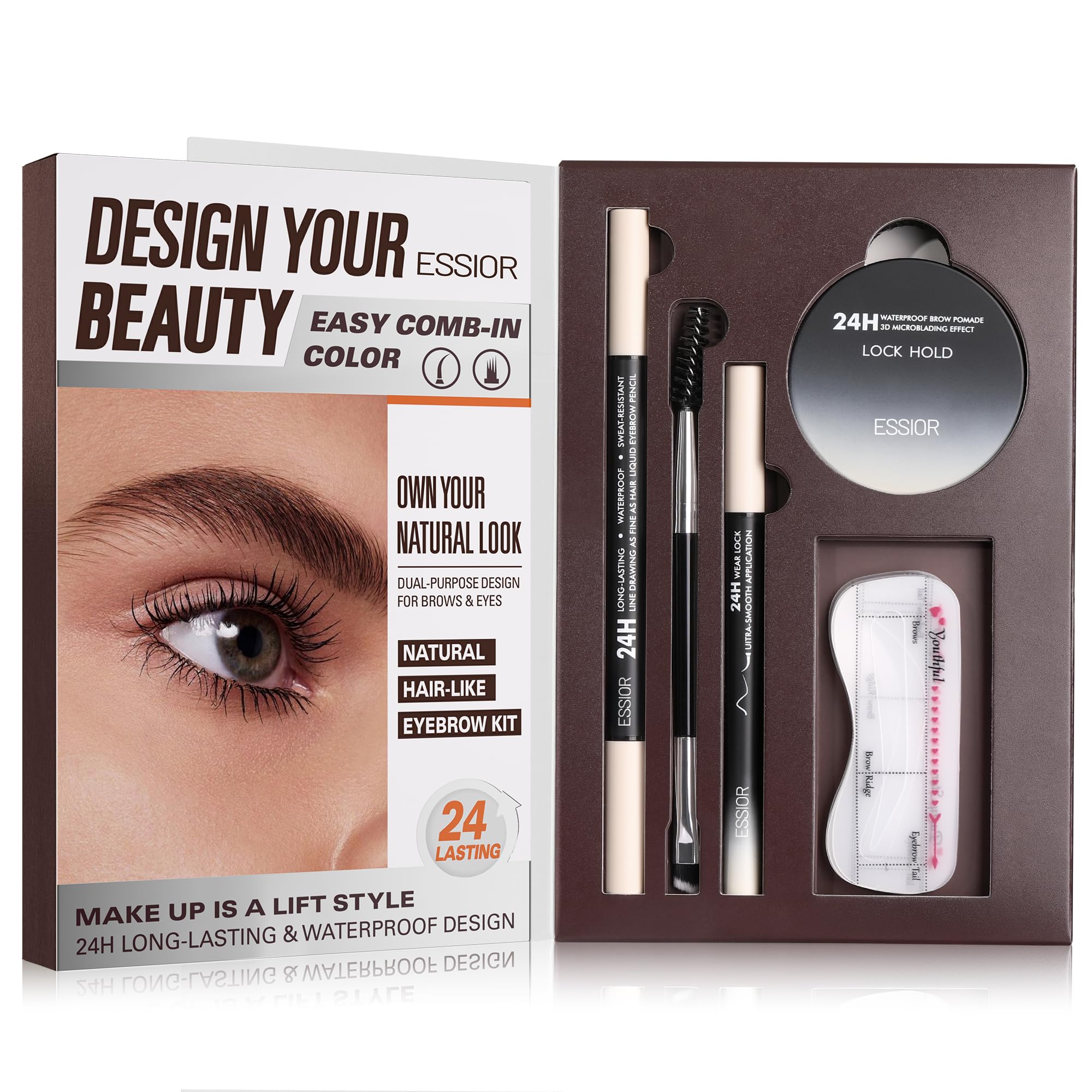 Kit de maquillaje de lápiz de cejas, con bolígrafo de cejas Microblading impermeable 2 en 1, pomada de cejas, delineador de ojos y