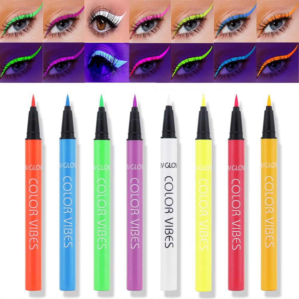 Delineador líquido de 8 colores UV Neon Glow impermeable y de larga duración para fiestas y rave, brilla bajo la luz negra (líquid