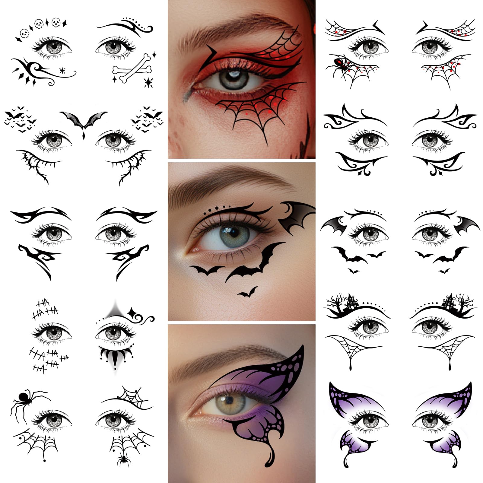Cerlaza Decoraciones de Halloween, sombra de ojos, tatuajes temporales para adultos y niños, kit de maquillaje de Halloween, delin