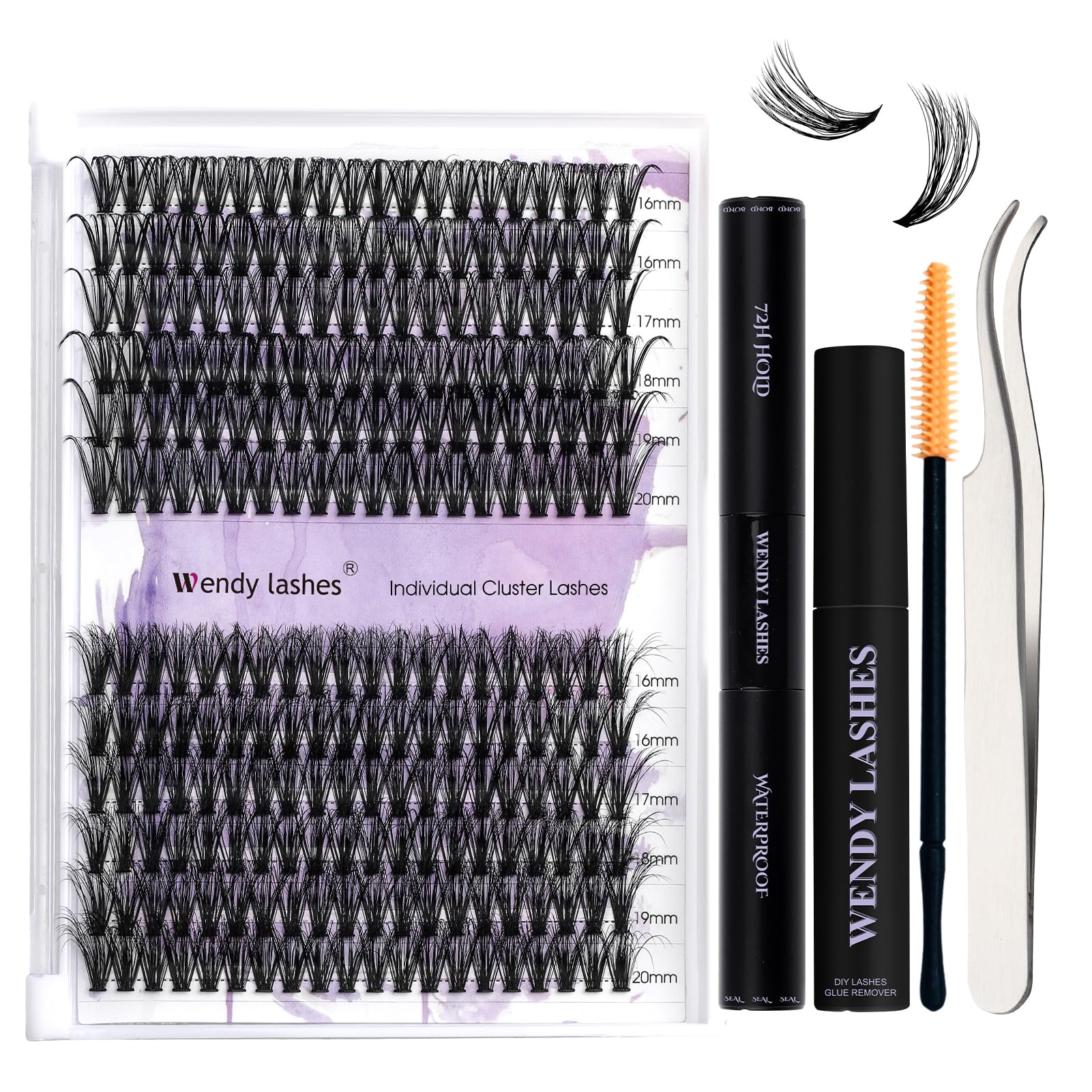 WENDY – Kit de extensiones de pestañas, kit de racimos de pestañas rizadas en racimo 40D+efecto 3D, pestañas individuales con unió