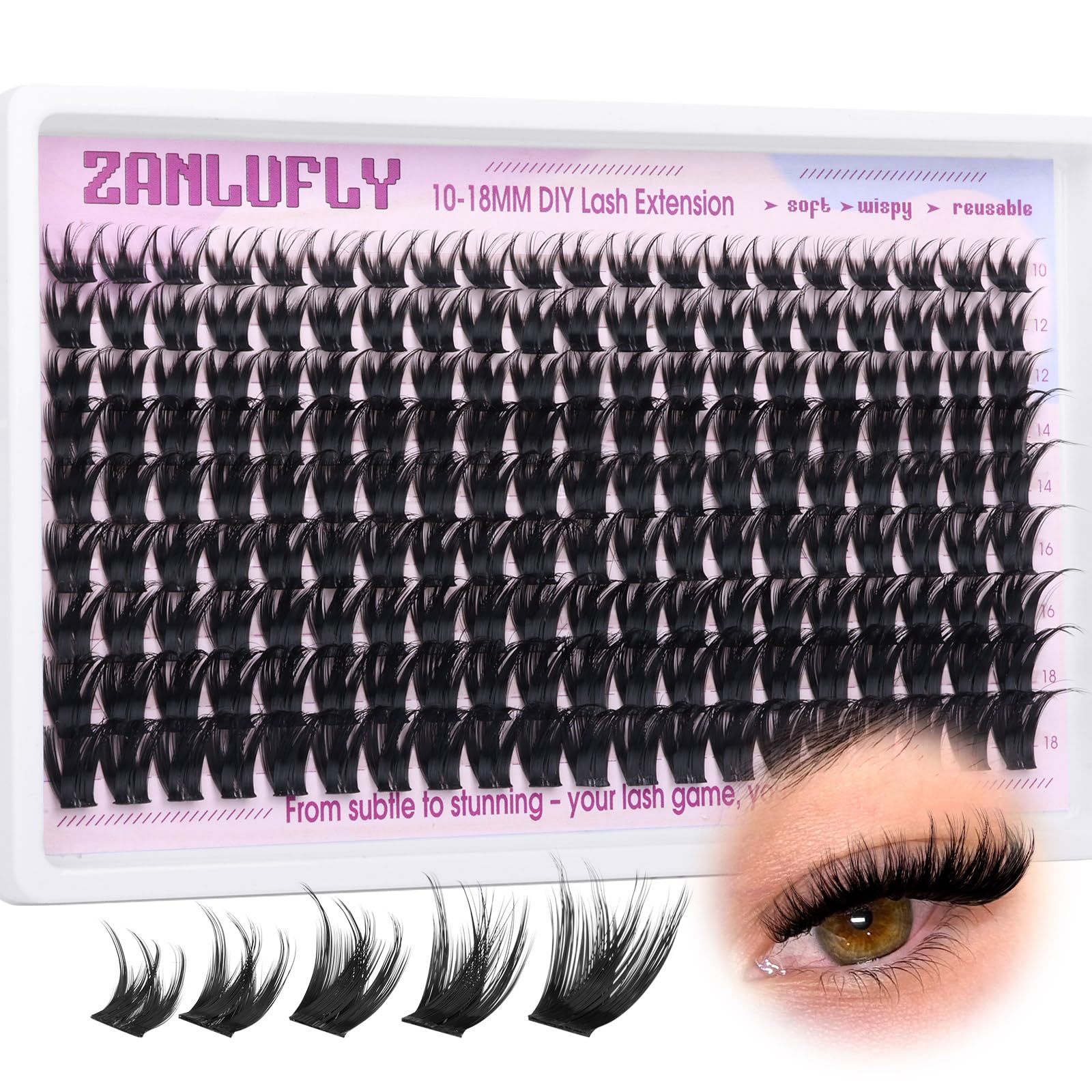 KEYYOU Kit de extensiones de pestañas para bricolaje, 280 racimos de pestañas suaves 60D+80D, rizo D, fácil de aplicar con adhesiv