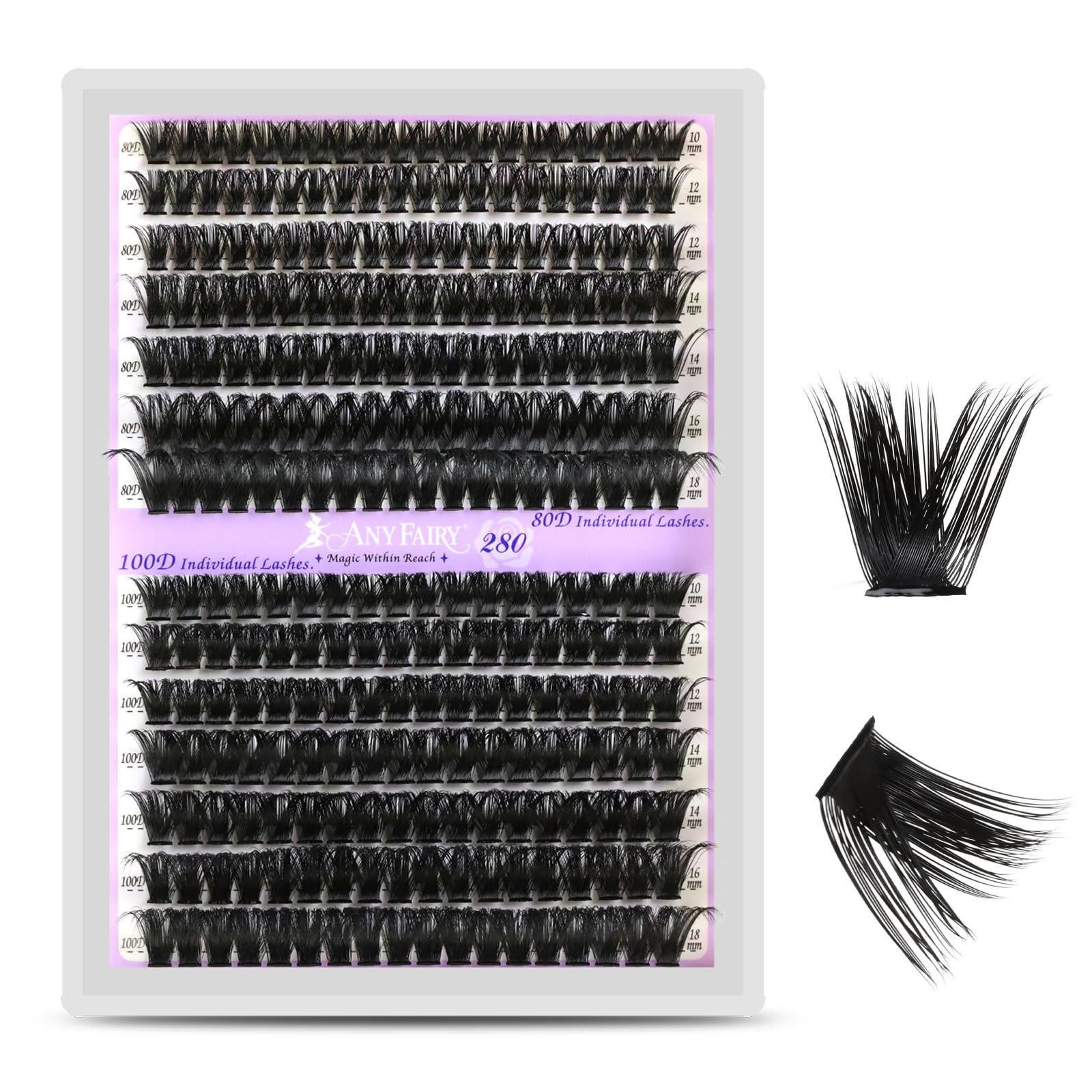 Kit de racimos de pestañas con efecto 3D, 280 piezas 80D100D 8-16 MIX, rizo D, kit de pestañas individuales de volumen natural sua