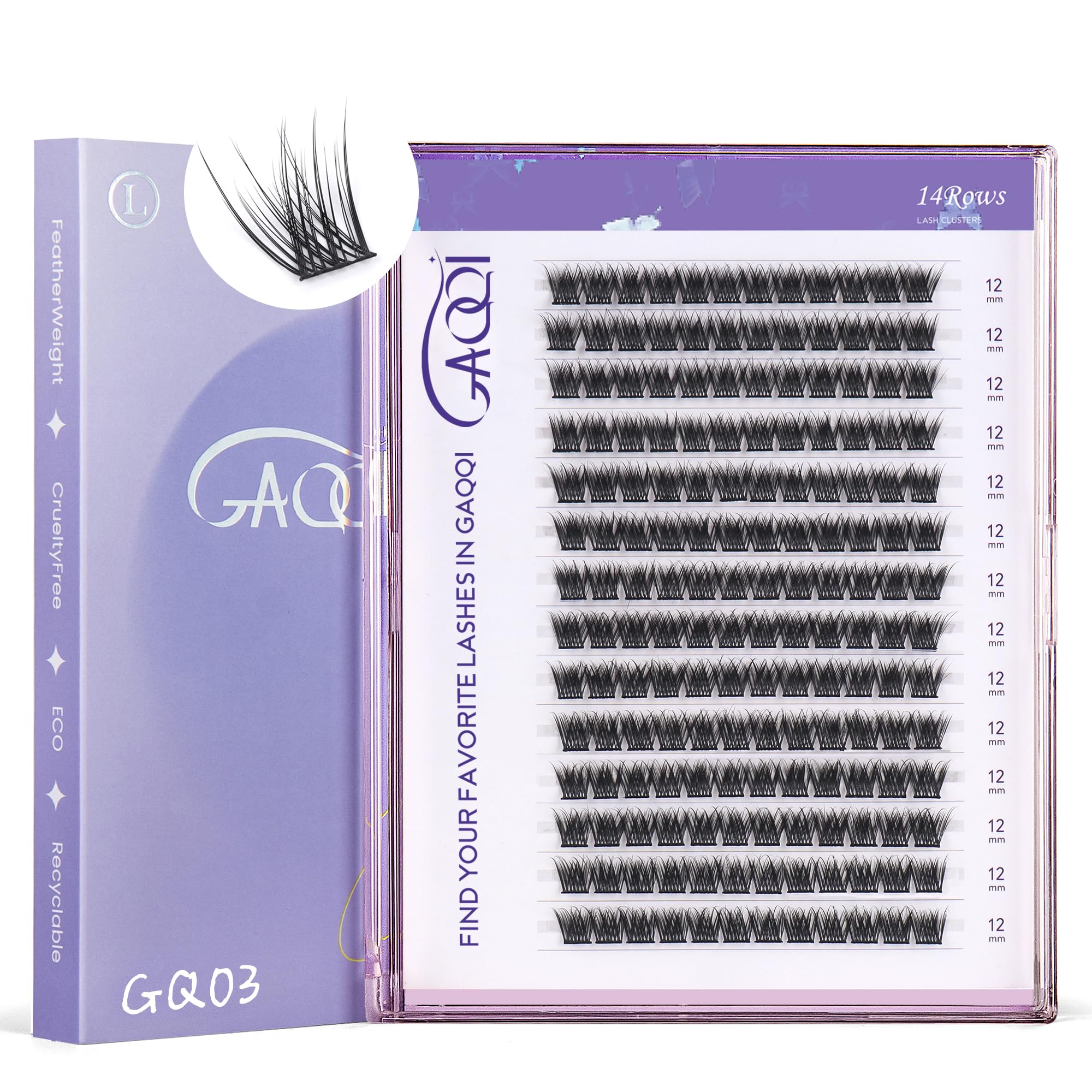 GAQQI Extensiones de pestañas postizas GQ03, extensiones de pestañas postizas para bricolaje, rizo C, 168 pestañas en racimo de 0.