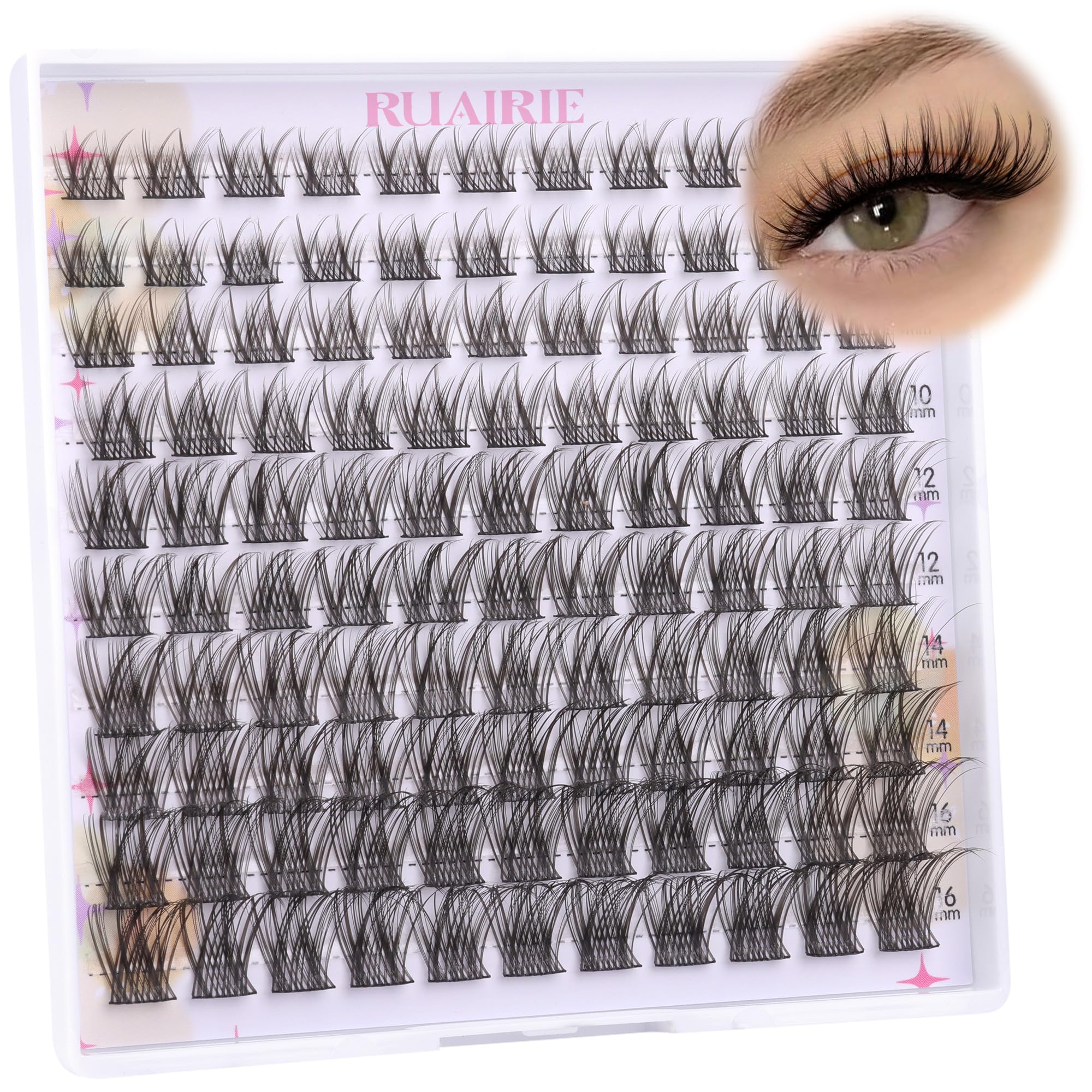 Ruairie Extensiones de pestañas en racimo de pestañas, extensiones de pestañas onduladas, 110 unidades, pestañas individuales natu