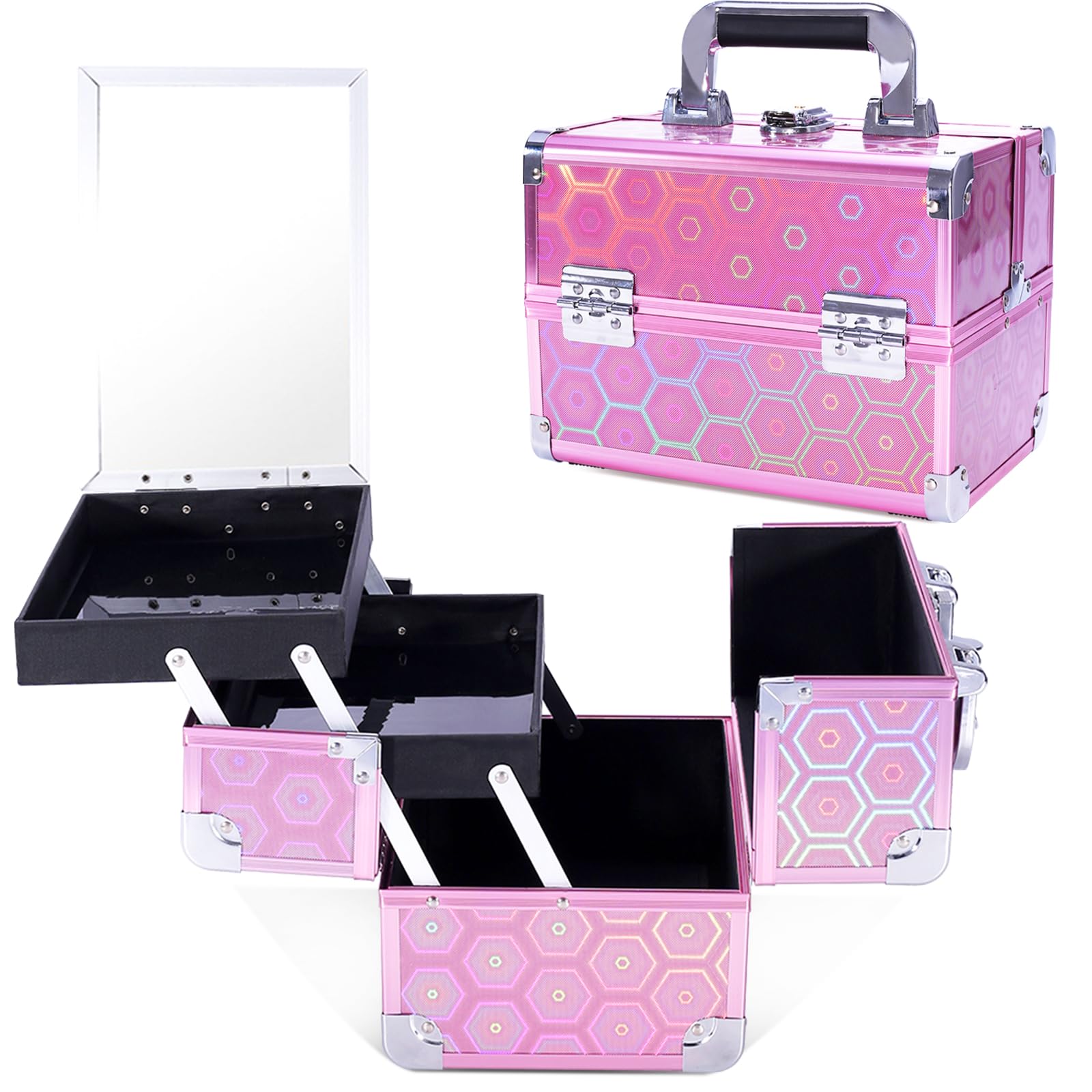 TOPACK Estuche de maquillaje profesional 5 en 1, estuche grande de maquillaje con llave/correa de hombro/cojín de mango, organizad