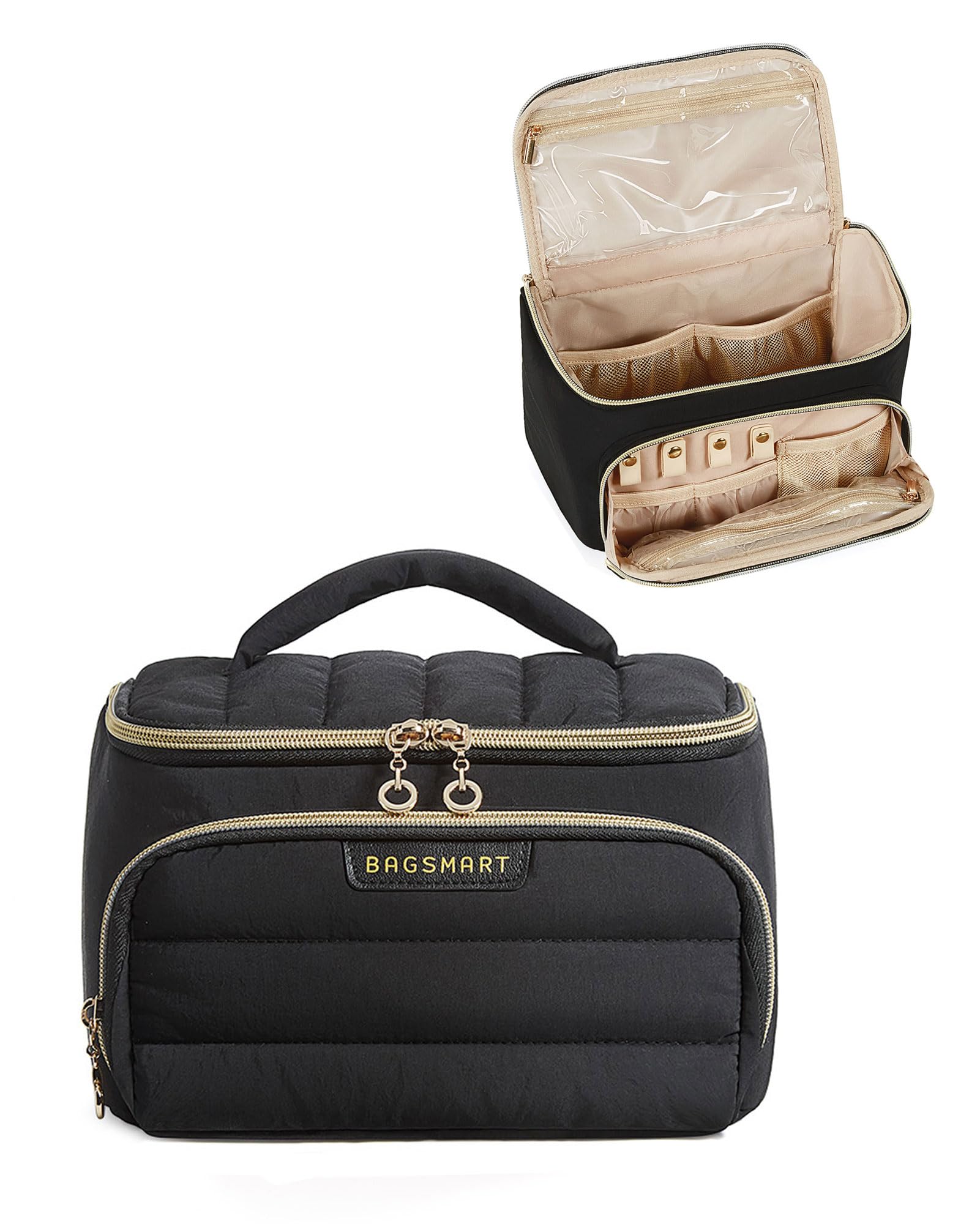 BAGSMART Bolsa de maquillaje hinchada de apertura ancha, Negro -, Elegante