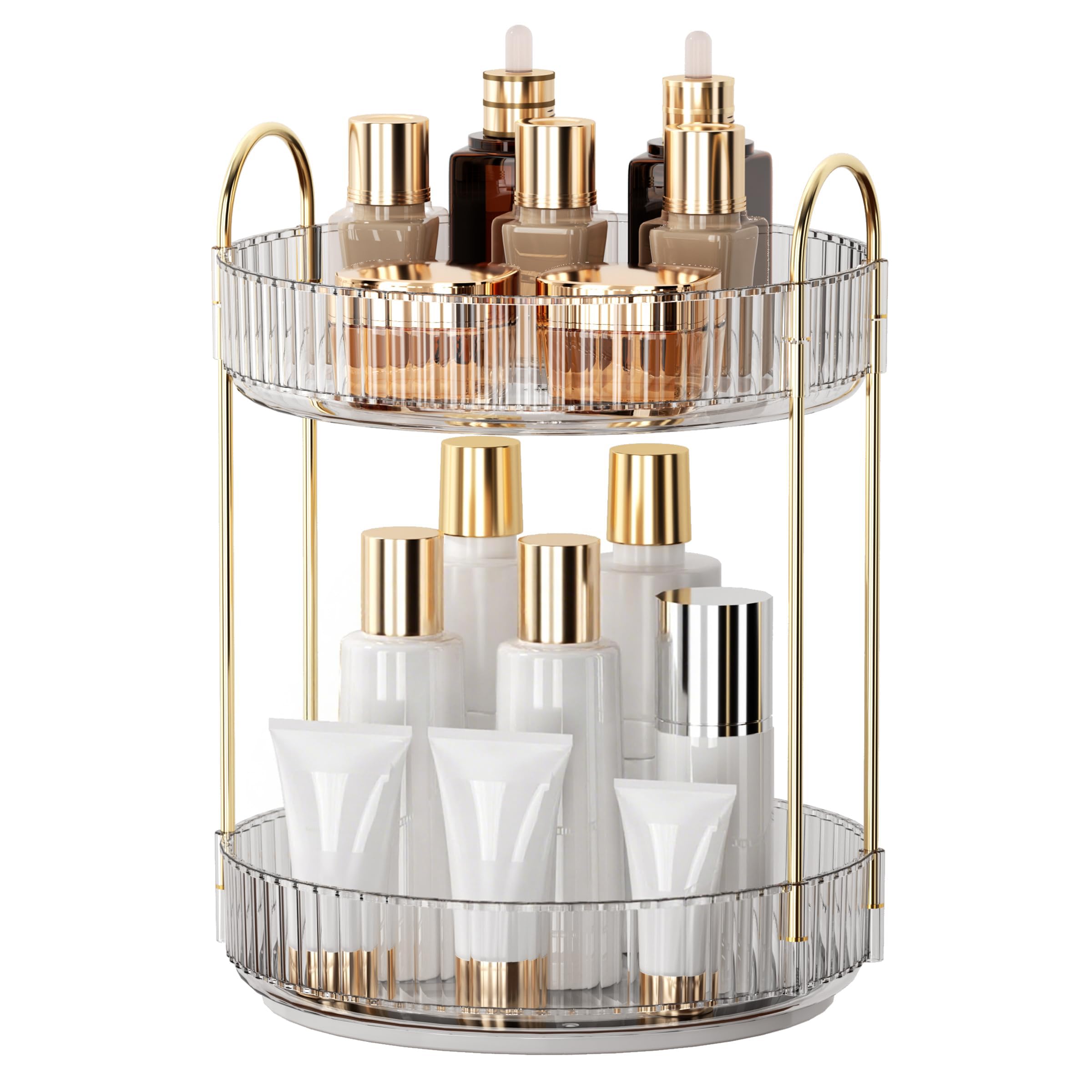 Organizador de maquillaje giratorio de 360 grados para tocador, organizador de perfumes ajustable de 2 niveles para tocador, cosmé